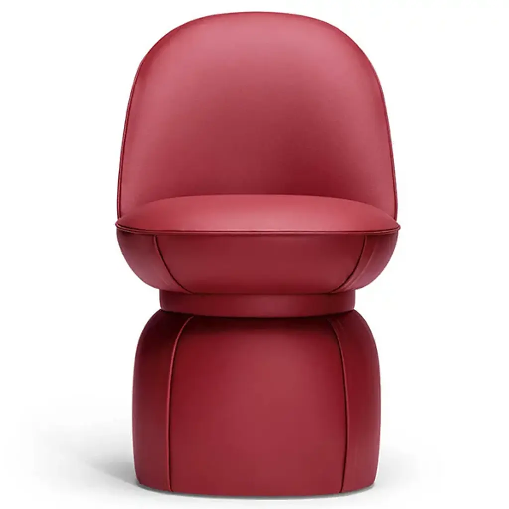 The Lepli Chair from Poltrona Frau unites the feminine curves of the fashion world with a strong, hidden understructure to provide a welcoming addition to inside spaces. Created by Kensaku Oshiro and fusing the art and culture of his Japanese upbringing with his Italian industrial design training, its wasp-waisted figure is inspired by the curves of the female form in a dress and belted at its center. The curving silhouette features a soft seat and arcing back made of polyurethane foam set over strong MDF wood, with each section covered in soft upholstery for enduring comfort.