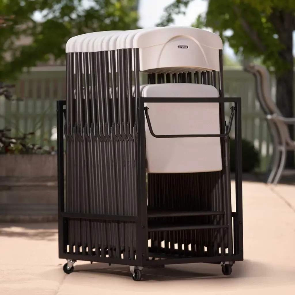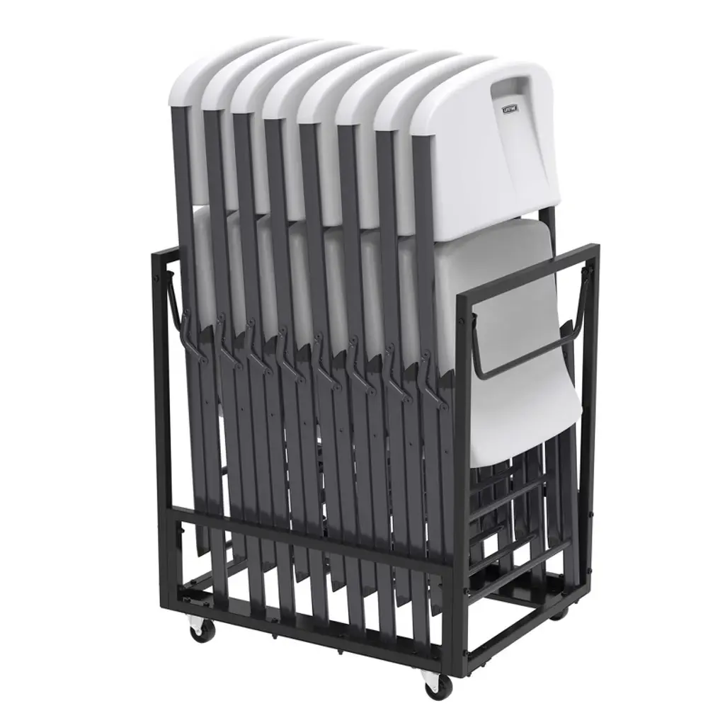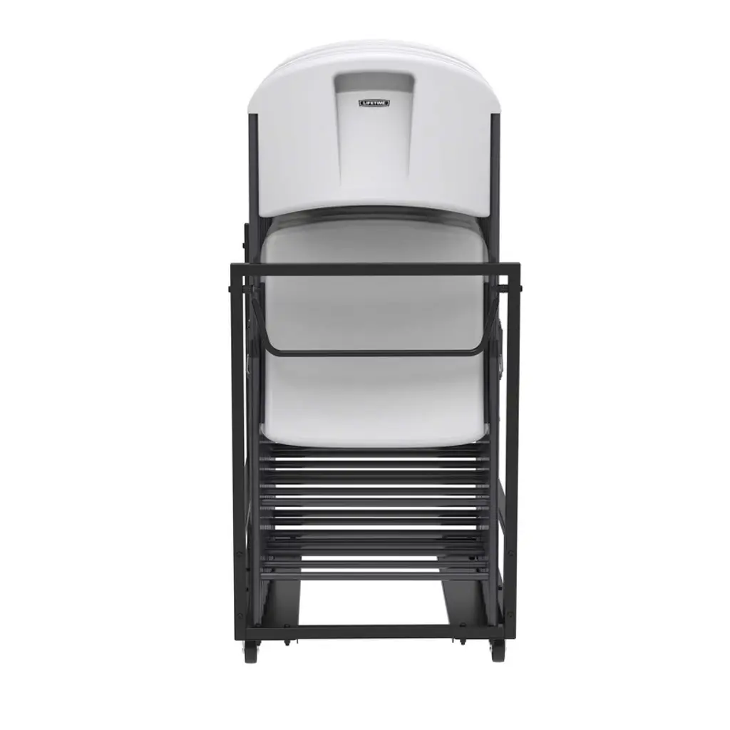 Store and transport your Lifetime Commercial and Light Commercial chairs with ease using the smooth caster wheels and 8-chair capacity. The lifetime bypass folding frame chair can be stored to a quantity of 14. The cart is constructed from durable, weather-resistant, powder-coated steel, so you can rely on it confidently. Enjoy the convenience of a cart that is designed to fit through a standard doorway and is simple to maneuver. Store and transport your Lifetime chairs the easy way with the Lifetime Chair Cart!