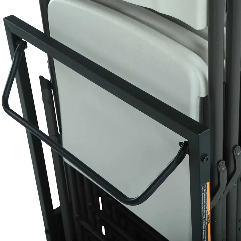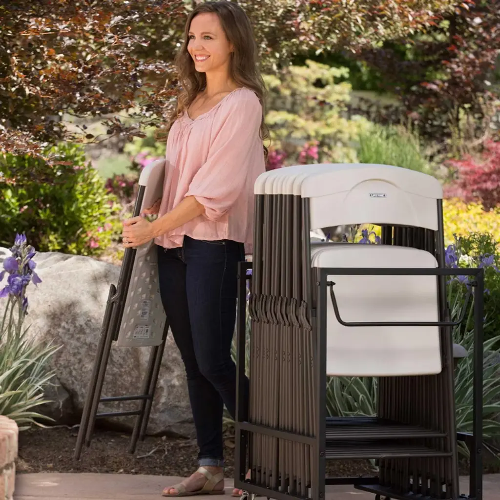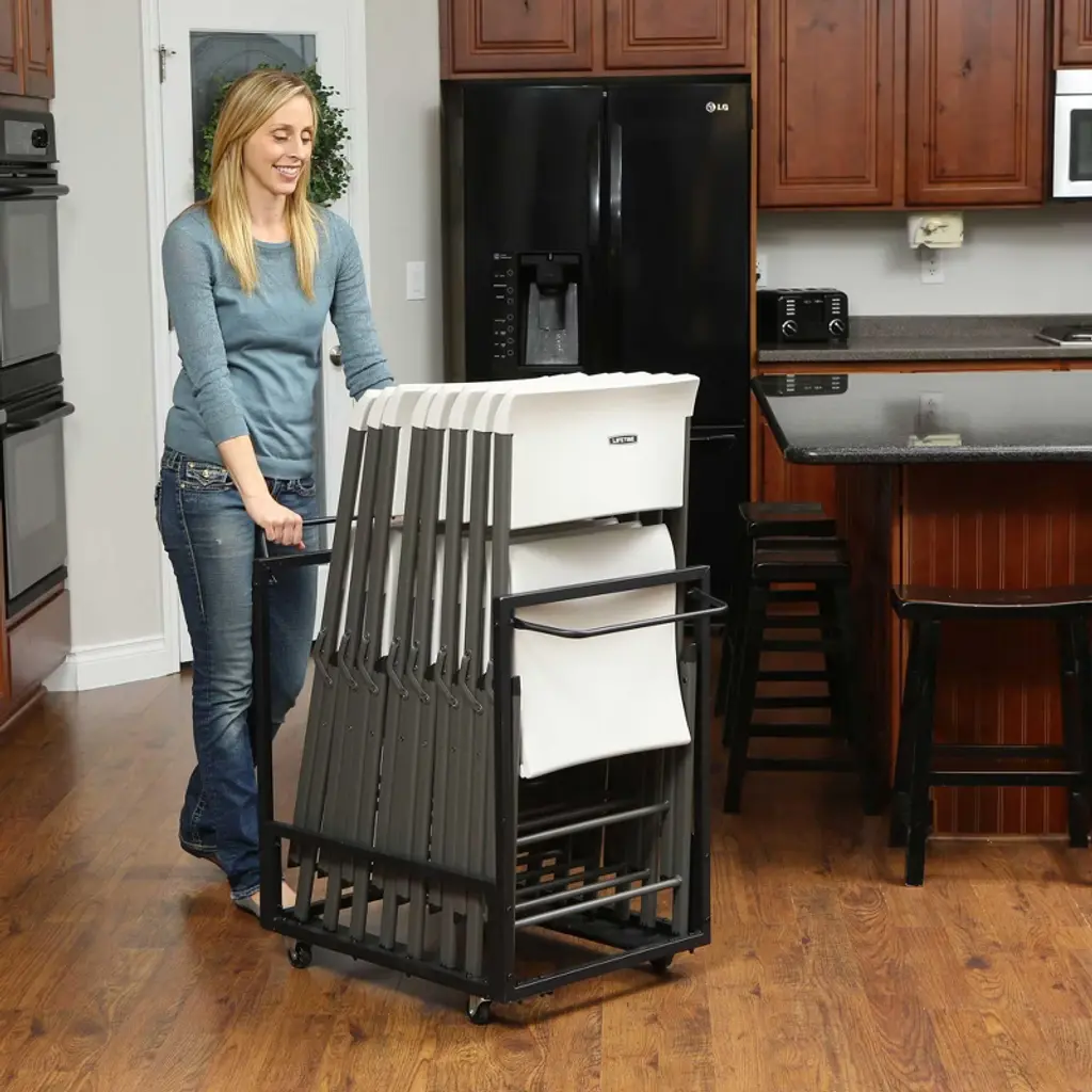 Store and transport your Lifetime Commercial and Light Commercial chairs with ease using the smooth caster wheels and 8-chair capacity. The lifetime bypass folding frame chair can be stored to a quantity of 14. The cart is constructed from durable, weather-resistant, powder-coated steel, so you can rely on it confidently. Enjoy the convenience of a cart that is designed to fit through a standard doorway and is simple to maneuver. Store and transport your Lifetime chairs the easy way with the Lifetime Chair Cart!