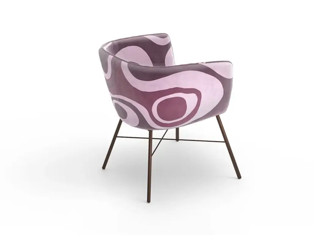 The price refers to the configuration shown in the photo:- TF3B printed velvet covering. Bronze lacquered metal tubular feet.- VIKI 23 plain velvet covering. Brass lacquered metal tubular feet.- EP2C printed velvet covering. Bronze lacquered metal tubular feet.LINTON | LTN01: Chair with armrests wooden structure and metal tubular feet with lacquered finish in color: white, black, bronze and brass. Seat and shell with padding in polyurethane foam. Piping stitching. Non removable upholstery. Momenti's Home & Contract collection offers a wide range of furniture products and accessories, all customizable. Each product can be customized through the choice of various details such as different bases or handles to make it unique. It is possible to choose between 3 Collections which include 36 graphics designed specifically for the Home & Contract collection. The result is a unique product, a mix of art and design, enhanced by a selection of refined and hand-crafted materials.Our furniture is created with: - wooden particle panels created by the use of salvaged wooden material, thus avoiding the cutting of new trees. Low-formaldehyde glues have been used for this product. - composite alluminium alloy panel, with an interposed core of polyethylene, the simplest of the synthetic polymers and the most present in nature.The working process takes place in full respect of the current environmental regulations. Our compound is then applied to these supports, which is made of non-toxic, odor-free, water-repellent and easy to clean resins.