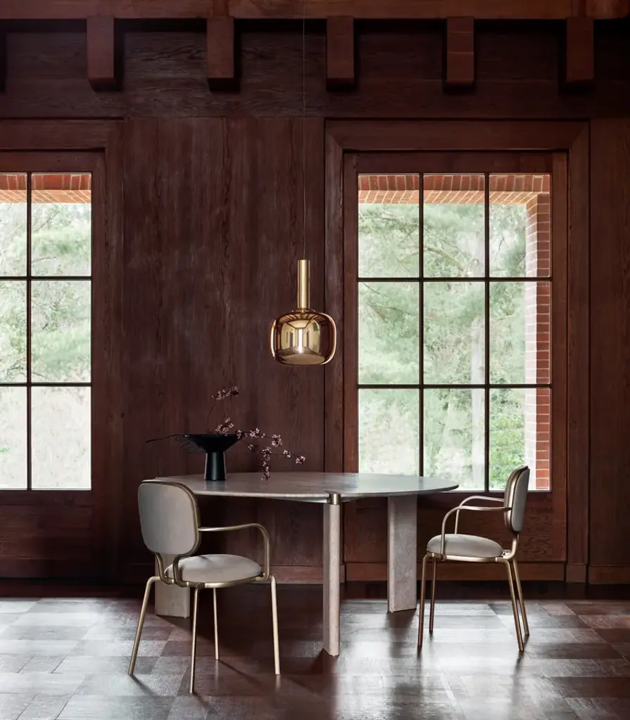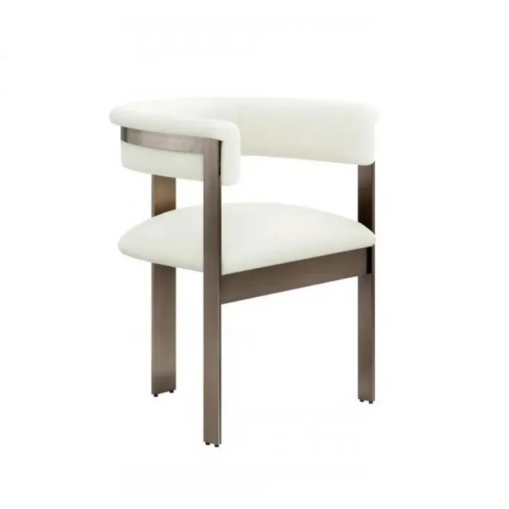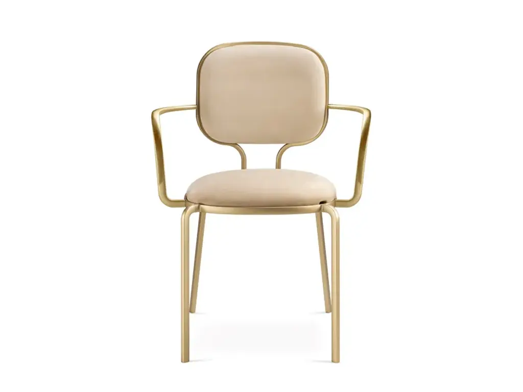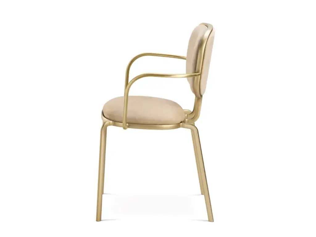The materiality of the metal alloy flows sinuously into the mold giving life to the idea of a rectangular section with slightly rounded sides and edges which, moving freely in space, re-proposes itself on an increased scale up to design a discreetly curved seat and back (but generously padded!) and ends aiming decisively to the ground with four definitively straight legs.