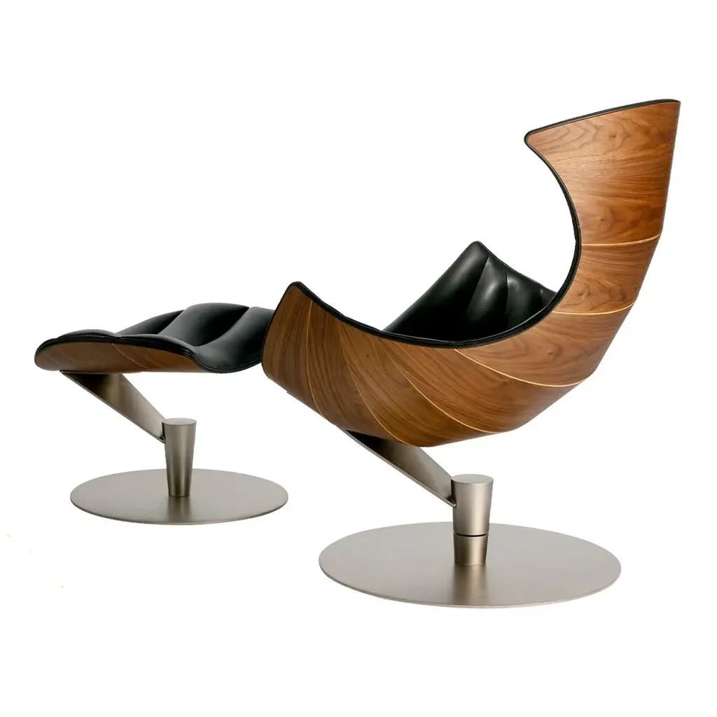 The Lobster Chair & Ottoman is an exclusive and elegant Danish designed new modern. The chair has been designed by LUND & PAARMANN and was first launched in 2008. Lobster is produced using quality materials: the shell is molded beech with a walnut veneer, Oak veneer or black beech veneer on the outside whit a mat lacquered surface easy to clean. Matching stool available here