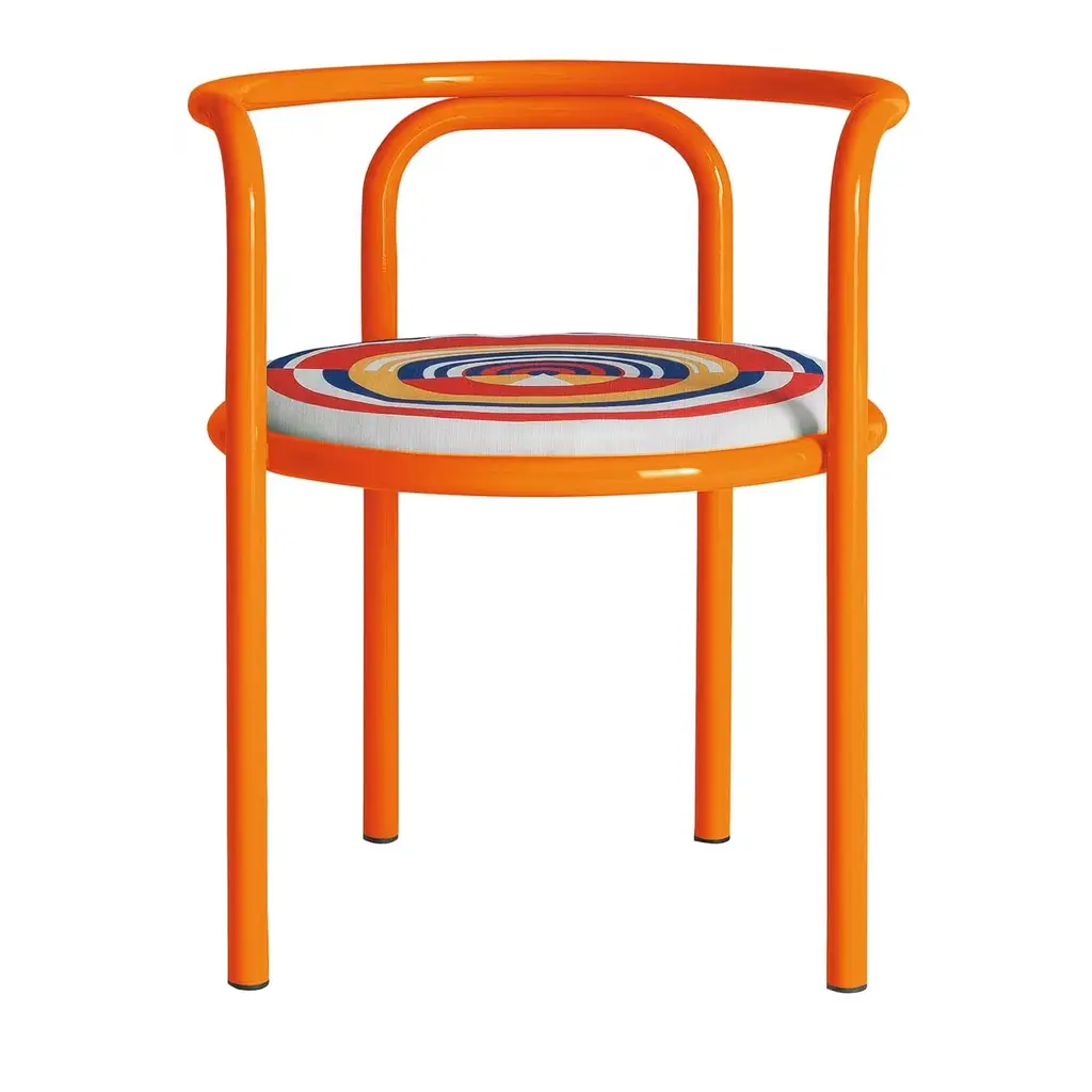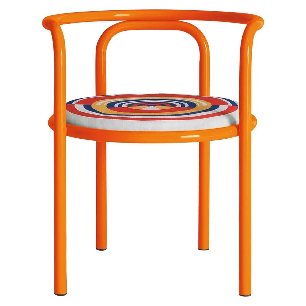This chair will be the heart of a patio, garden, or veranda imparting a colorful, contemporary aesthetic to any outdoor setting. Showcasing a sinuous silhouette, the tubular steel frame with a rounded back and integrated arms boasts a bright blue color while the padded seat is covered with an exclusive print fabric. From the iconic Locus Solus Collection designed by Gae Aulenti in 1964 and re-released over fifty years later by Exteta, this chair is available in other bright colors and the removable seat cover can be customized in all Exteta's catalog fabrics. If the products are placed completely outside, nightcovers that can be purchased at an extra price are recommended. Please contact the Concierge for further information and options.
