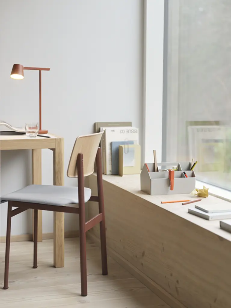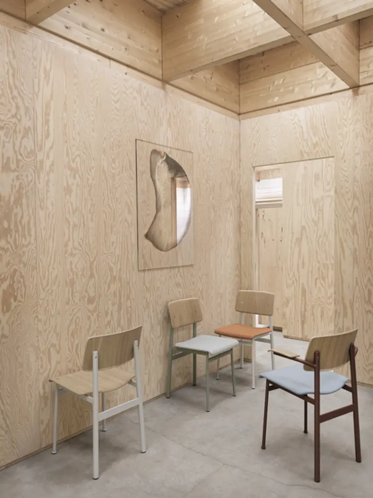 Loft Chair exemplifies honest, simple design thanks to an expression inspired by industrial design. The design features contrasting materials with its frame in powder coated steel that is offset by the soft plywood on seat and back, molded to embrace the user's body.