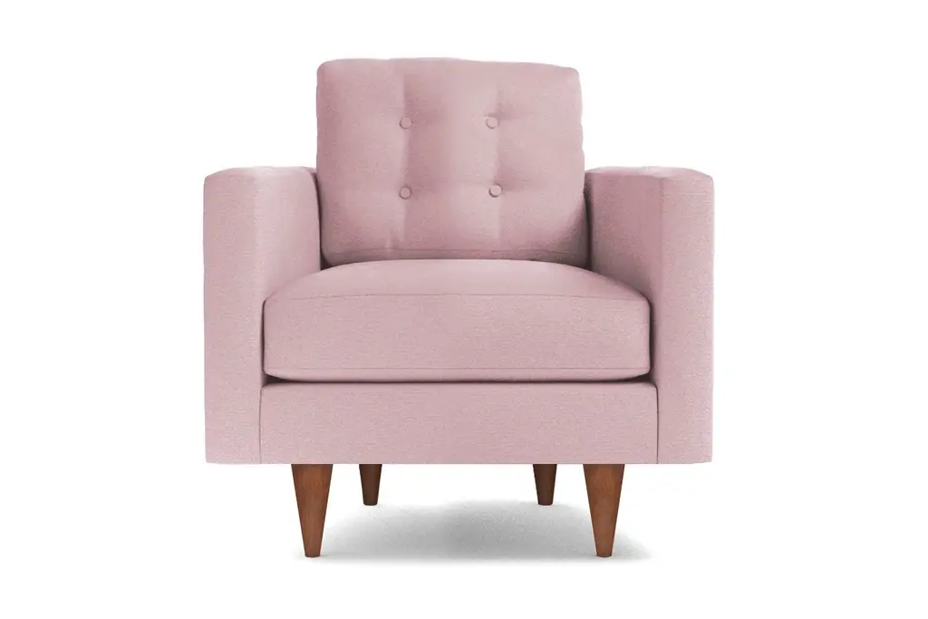Famed interior designer Kyle Schuneman's Logan Chair is a stunner and, without a doubt, will serve as the highlight of the room. Its high track arms and button-tufted back cushion are so inviting, you just want to sink right in and forget about the stress of the day. The chair is elevated thanks to the tapered wooden legs, adding to its elegant modern shape. The Logan comes in your choice of colors and fabrics, so you can customize it to suit your taste. From classic neutrals to vibrant pink and teal, you'll find the perfect shade for your home. And if you're unsure of the fabric type or color, we'll send you some swatches to help you decide. The Logan Chair is made in the United States and features a limited lifetime warranty.