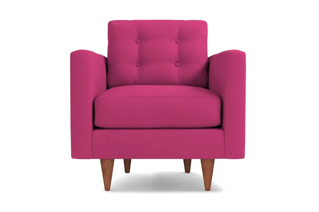 Famed interior designer Kyle Schuneman's Logan Chair is a stunner and, without a doubt, will serve as the highlight of the room. Its high track arms and button-tufted back cushion are so inviting, you just want to sink right in and forget about the stress of the day. The chair is elevated thanks to the tapered wooden legs, adding to its elegant modern shape. The Logan comes in your choice of colors and fabrics, so you can customize it to suit your taste. From classic neutrals to vibrant pink and teal, you'll find the perfect shade for your home. And if you're unsure of the fabric type or color, we'll send you some swatches to help you decide. The Logan Chair is made in the United States and features a limited lifetime warranty.