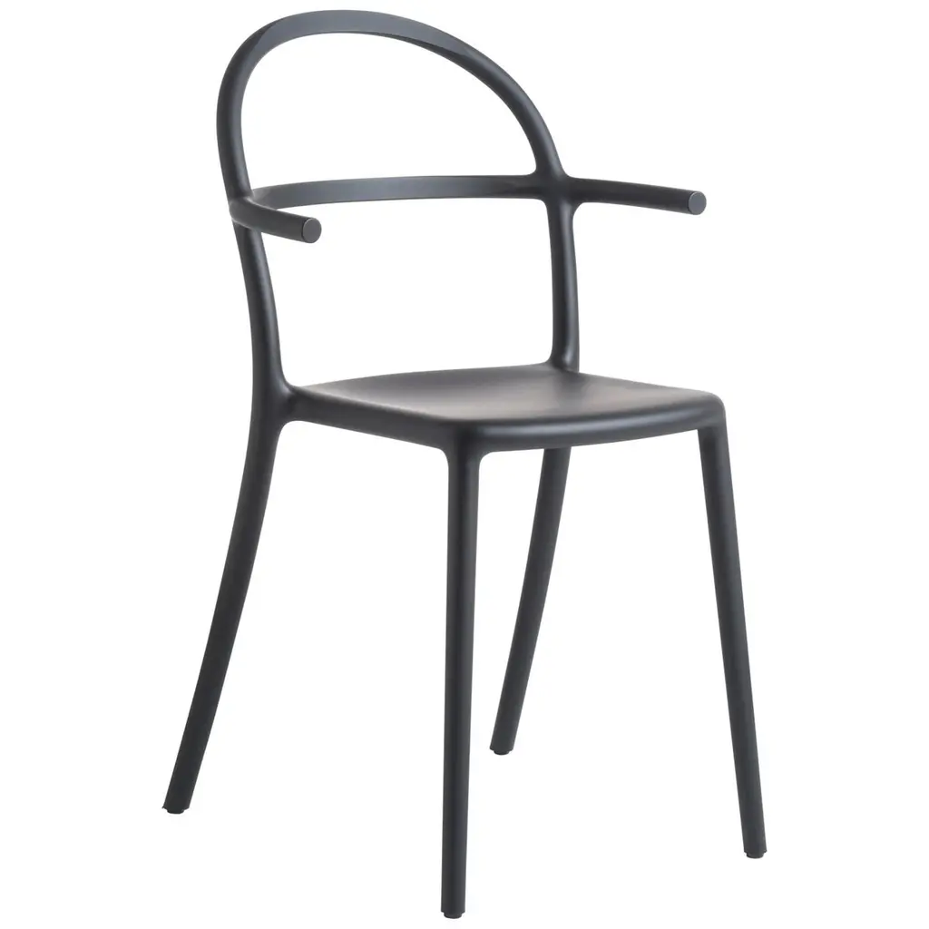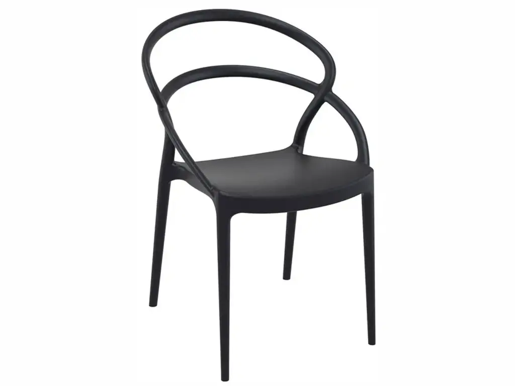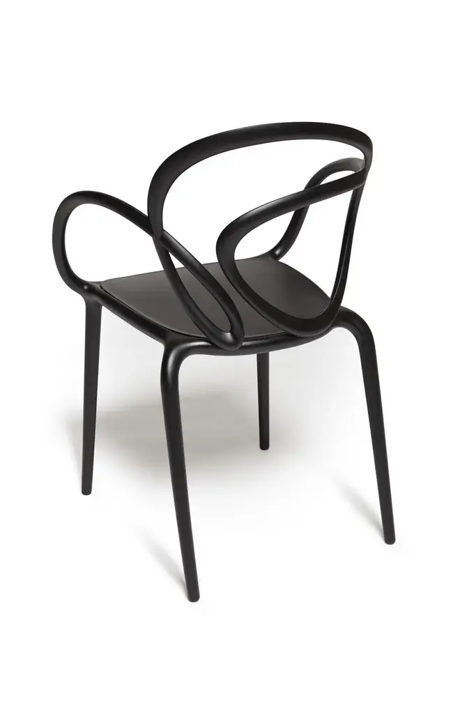 LOOP Stackable polypropylene garden chairAsymmetry and dynamism: the designers have been inspired by the human body, asymmetrical in nature, to create a seat that does not impose a single position but allows the body to find the ideal one. The volutes of the backrest and the esthetic harmony answer to a precise digital processing, while the molding injection with its unlimited possibilities allows to manipulate the plastic material experiencing proportions and dimensions until succeeded the best result.