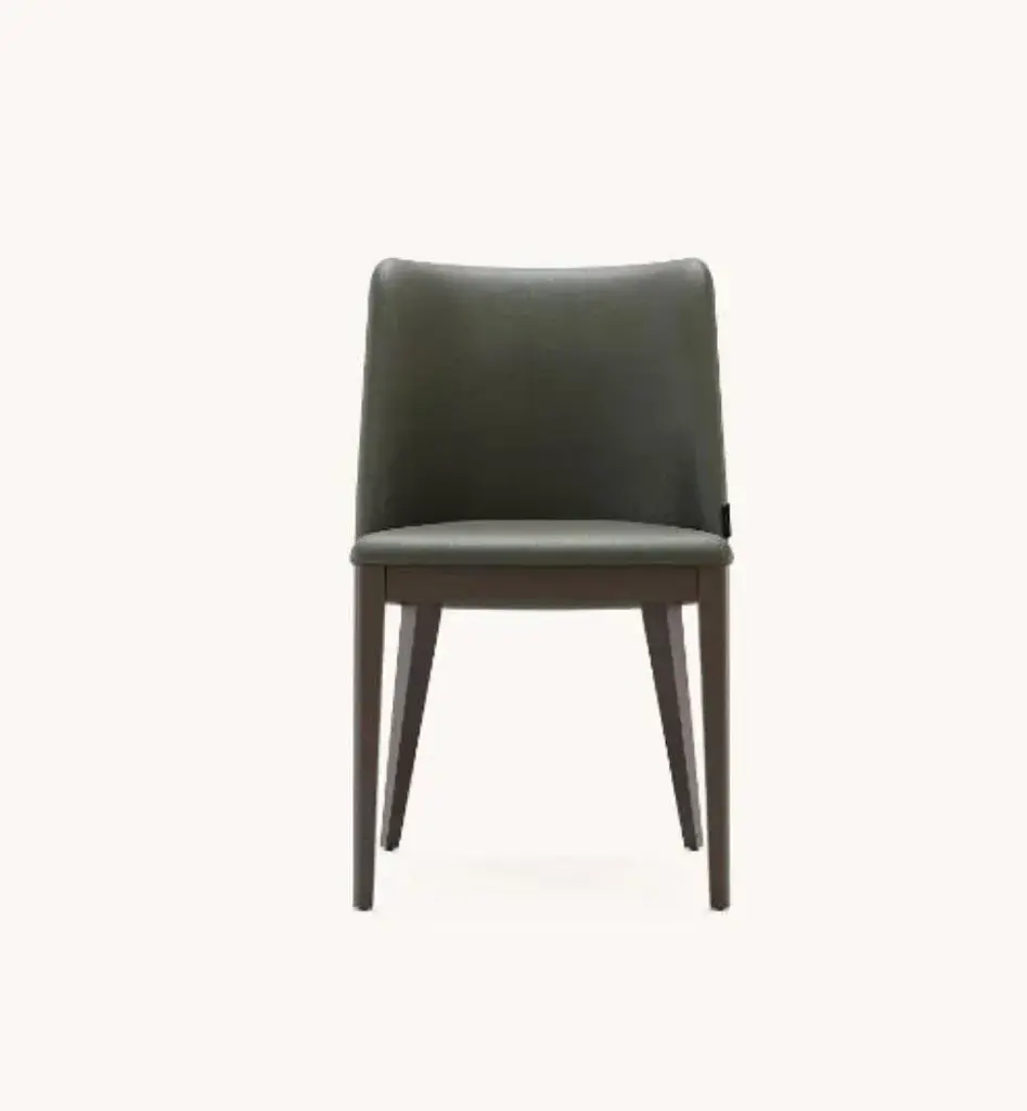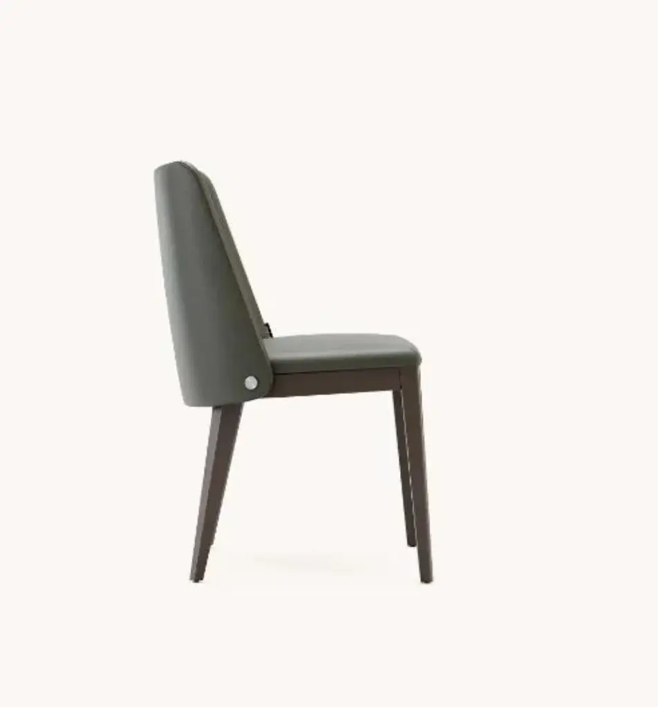 Louise chair by Domkapa Materials: natural leather, Fumé stained ash. Dimensions: W 52 x D 57 x H 82 cm. Louise chair's robust design exhales confidence and character allied with simple lines but a strong statement of comfort. The back and seat are fully upholstered for a relaxing experience while the wooden legs finish the exquisiteness of the design. The slightly curvy back will assure a cozy experience with a daring design including golden nails. Its simple yet sophisticated lines match any decor and enhance the room.