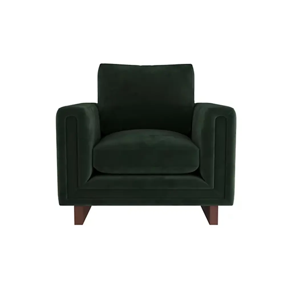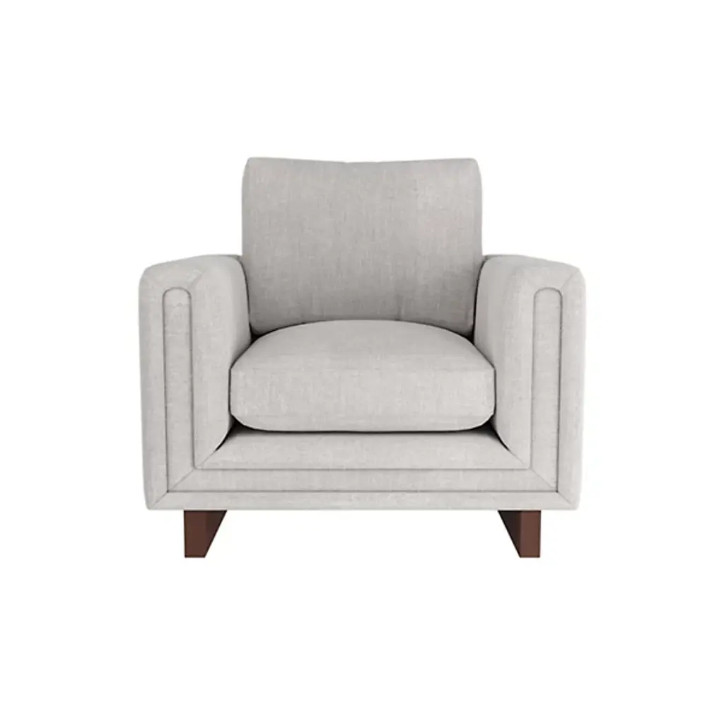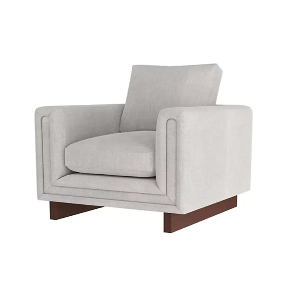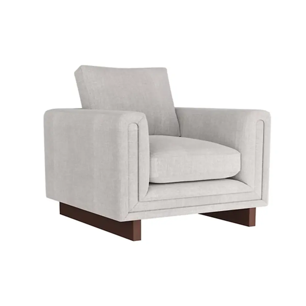 The Lovell Chair from Arteriors combines comfort and elegance, boasting a tuxedo silhouette with wrap-around, cushioned arms that provide both comfort and support. The chair is fully upholstered in linen, which adds a touch of softness to the design. The exposed wooden sled legs are finished in dark walnut, creating a beautiful contrast to the upholstery. The chair’s fiber-down cushions and generous proportions make it an ideal choice for relaxing and unwinding after a long day.