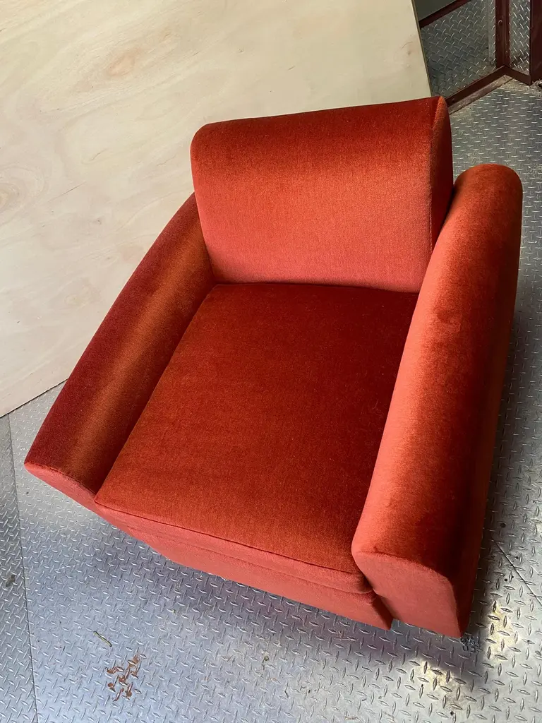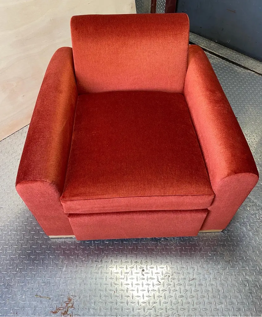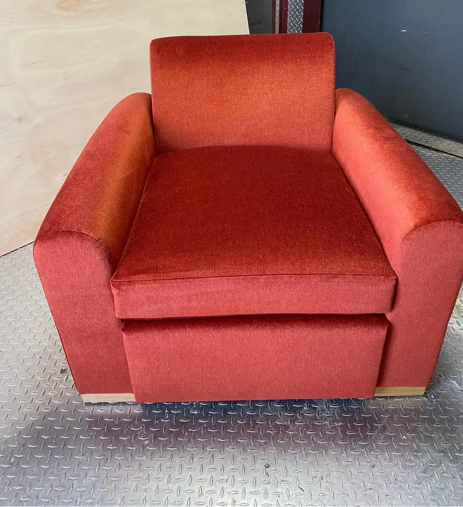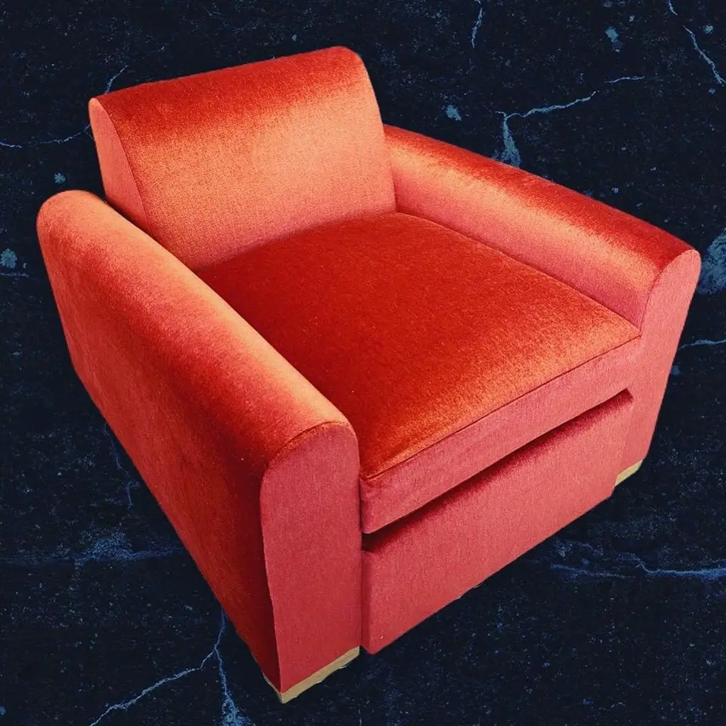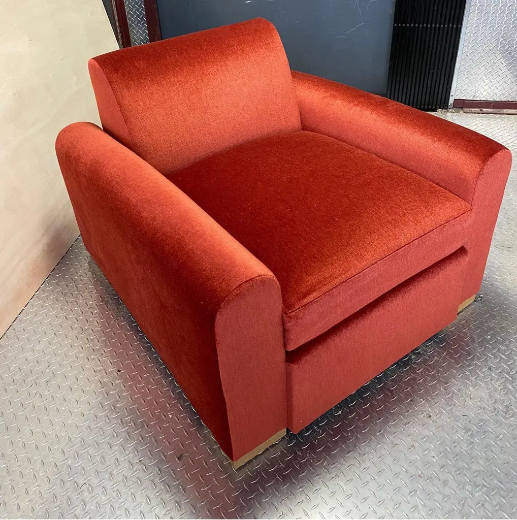 Ruhlmann-esque opulent club chair. With elegant luxurious proportions, and inviting comfortable seat. This chair will make any area look and feel sophisticated yet comfortable. We can custom details and fabrics.