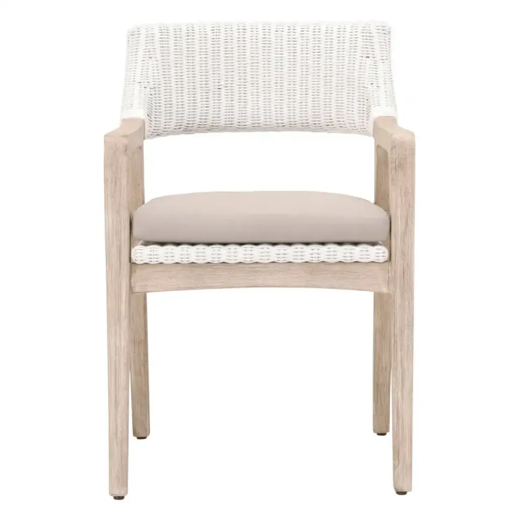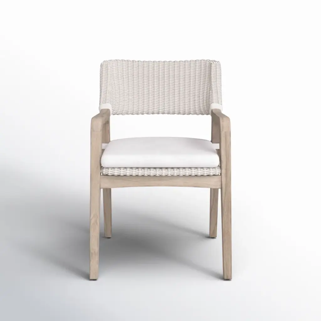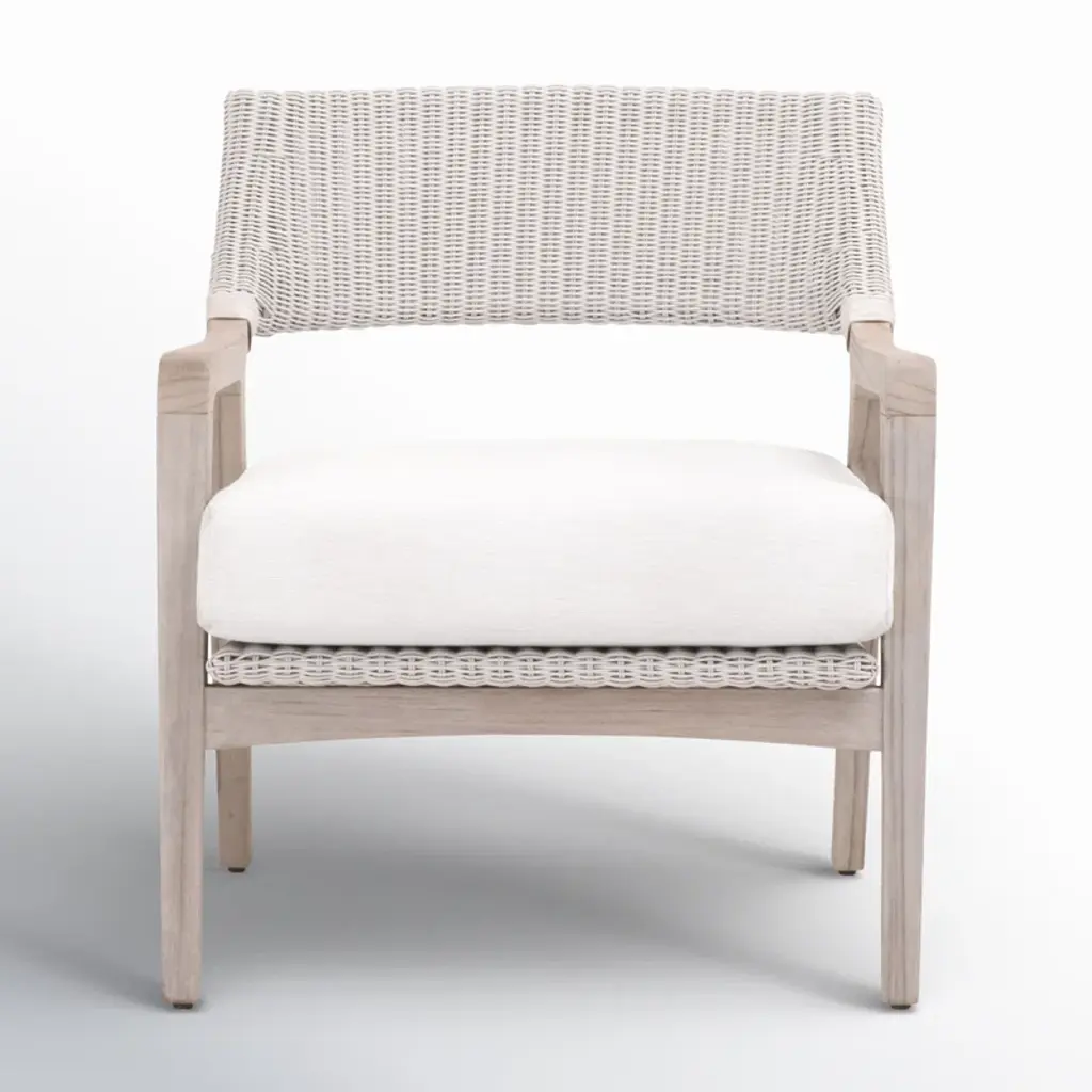 Lucia Pure White Synthetic Wicker Performance Stone Washed Ever Teak Outdoor Club Chair