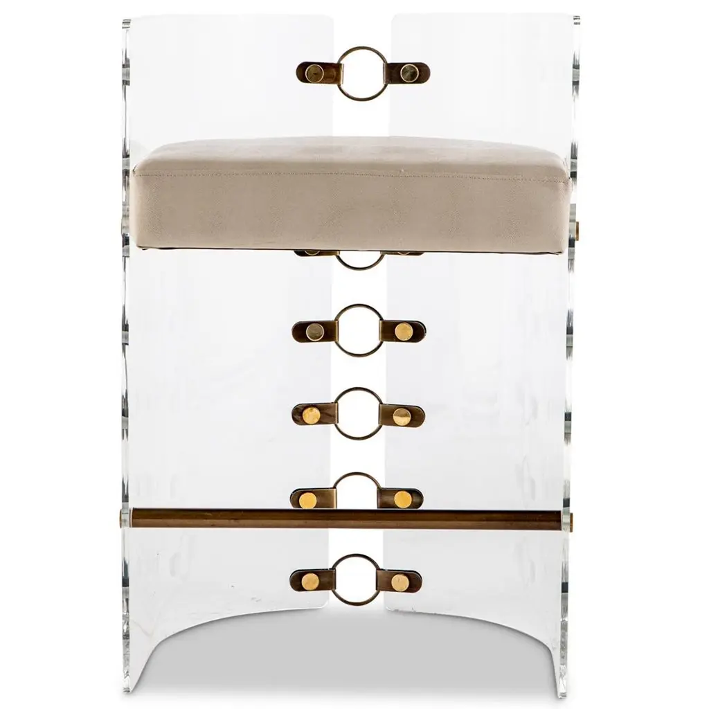 Lucite Acrylic, Brass Detailed And Leather Jetson Glamour Bar Chair