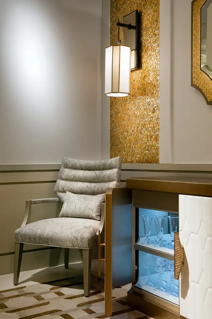 Lucrezia is a chair with structure in solid wood and plywood. Seat and back padded with flame-retardant polyurethane foam. Armrest padded on the top. Lacquered legs and armrests.