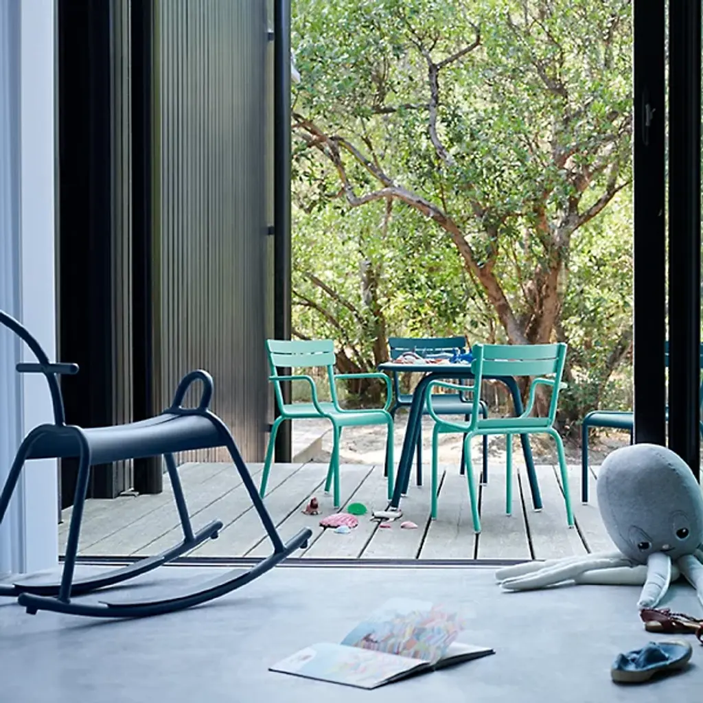 The fun colors and durability of Fermob furniture is perfectly suited for children. As such, the Fermob Luxembourg Stacking Child's Chair features all the smooth style of the Luxembourg collection, but on a scale for kids only. Ideal for children aged 3-6, this chair is made entirely of aluminum, and is available in a wide variety of different colors.