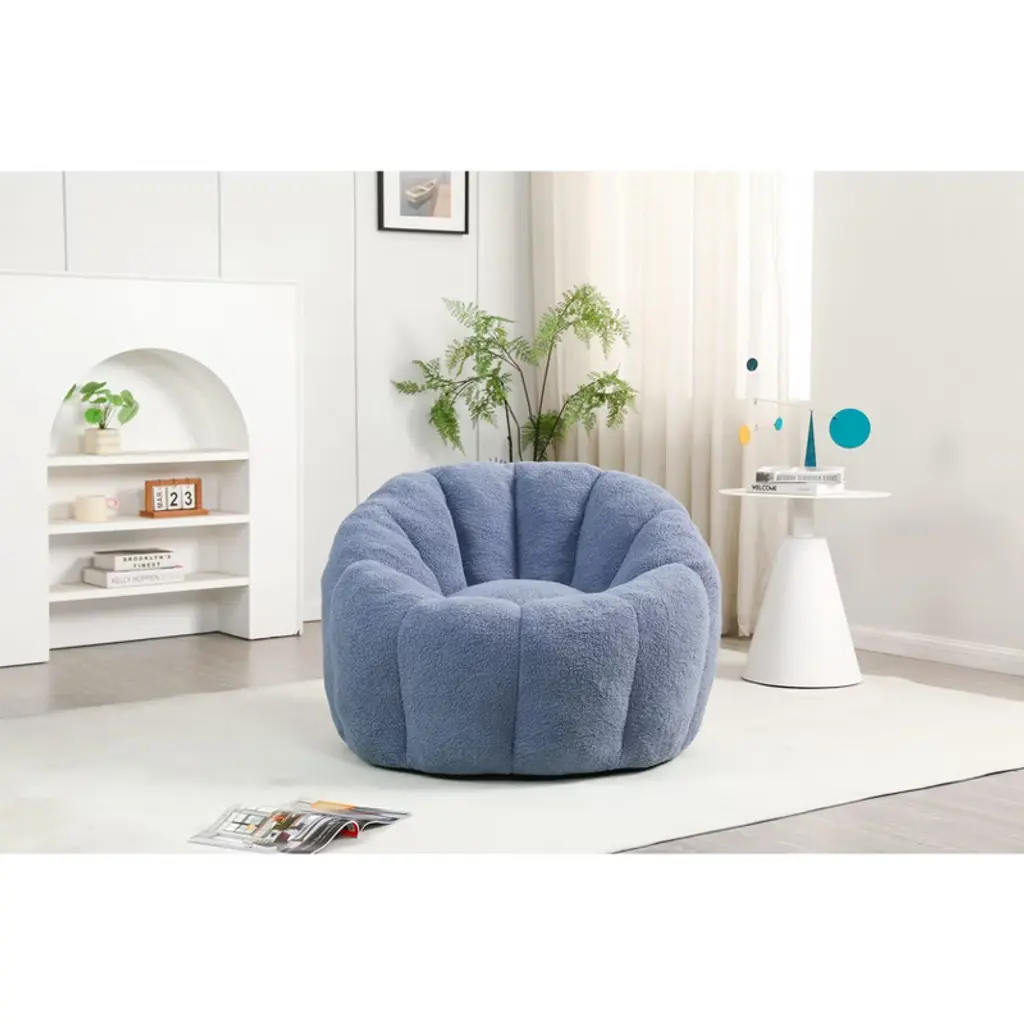 Lyngins Teddy Fabric Bean Bag Chairs For Kids And Adults,comfy Lazy Chairs With Memory Foam For Living Room,light Blue