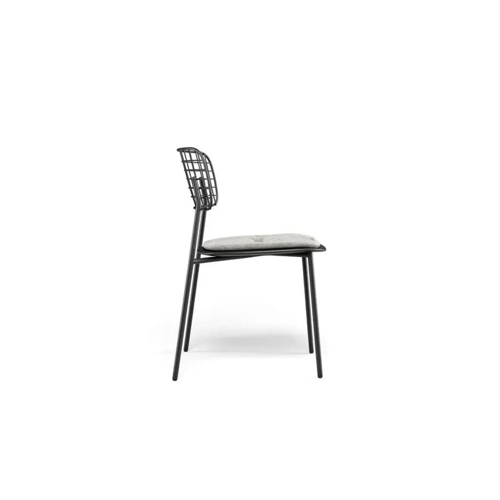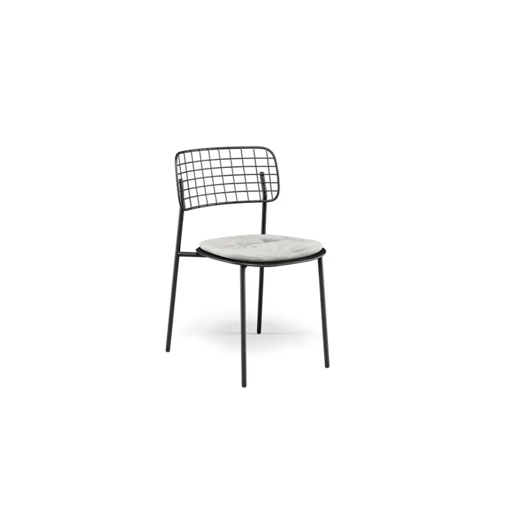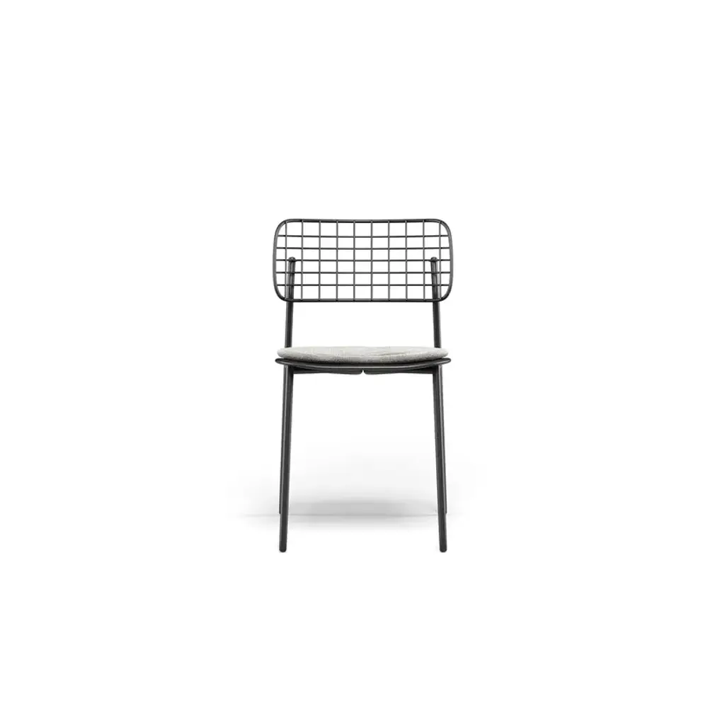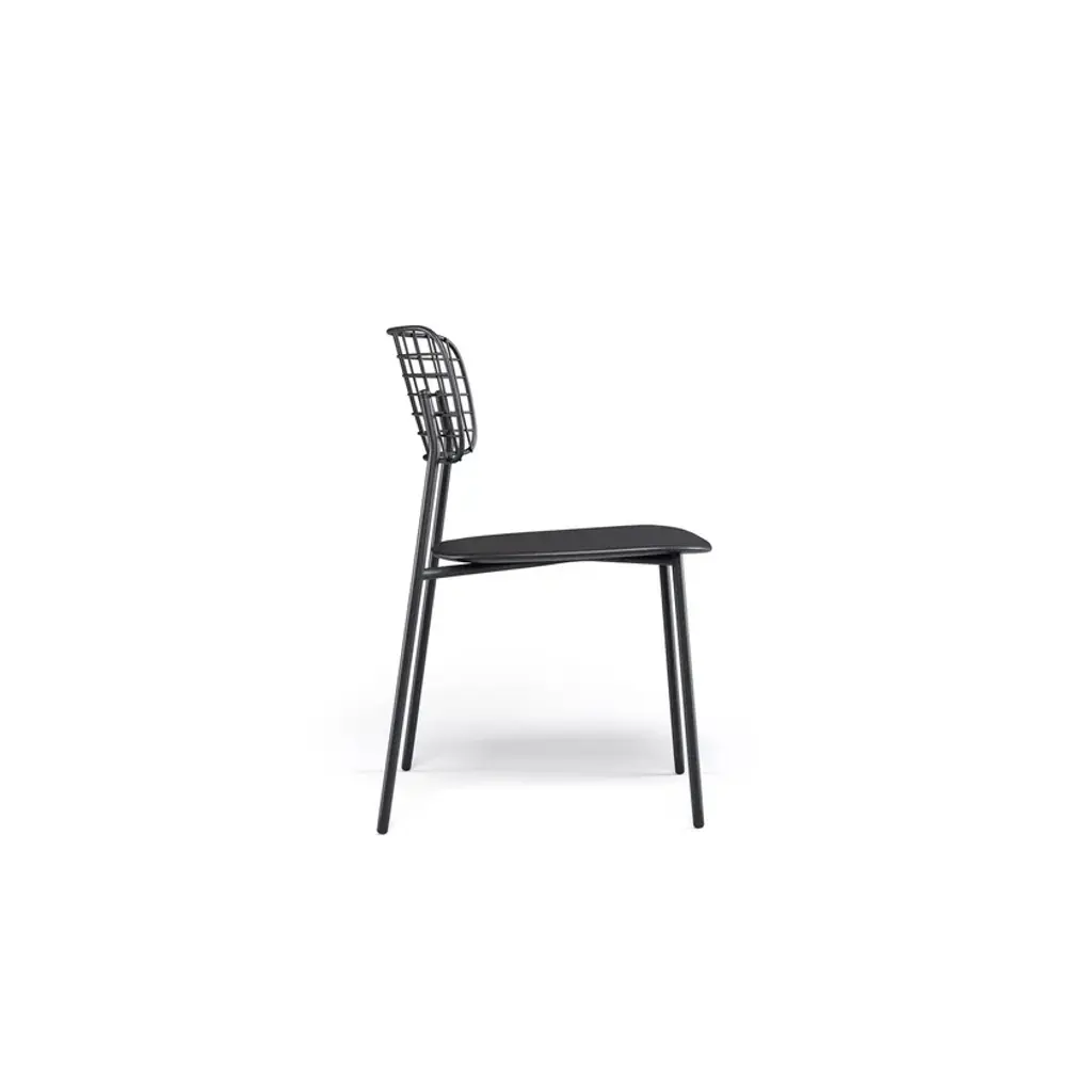 Lyze is an aluminium and steel chair. Available version with teak seat.A light touch and a novel combination of shapes provide the inspiration for Lyze by Florent Coirier, a collection that teams aluminium with steel. The framework of the chairs, in extruded aluminium, is combined with a seat in die-cast aluminium and a backrest formed by a pattern of stainless steel circles. The frame and the backrest are fixed mechanically, using screws, to allow for the creation of numerous colour combinations between the seat and the backrest. The coffee table, with aluminium structure and fibre-cement top, completes the collection. Colours: Black frame-black backrest; black frame-stainless steel backrest; white frame-white backrest; white frame-taupe backrest; red frame-red backrest; grey-green frame-stainless steel backrest; green frame-white backrest.