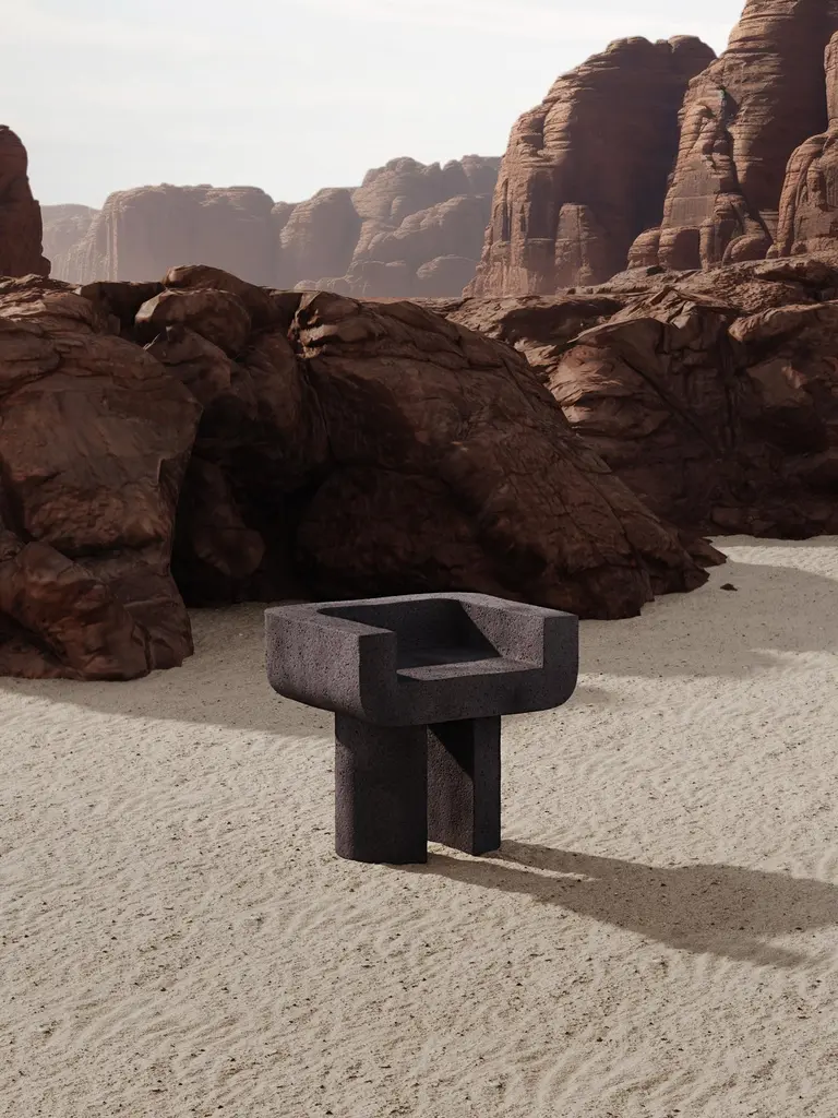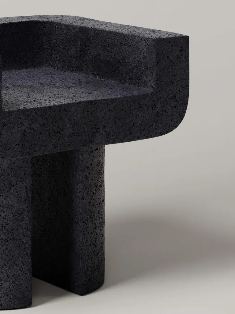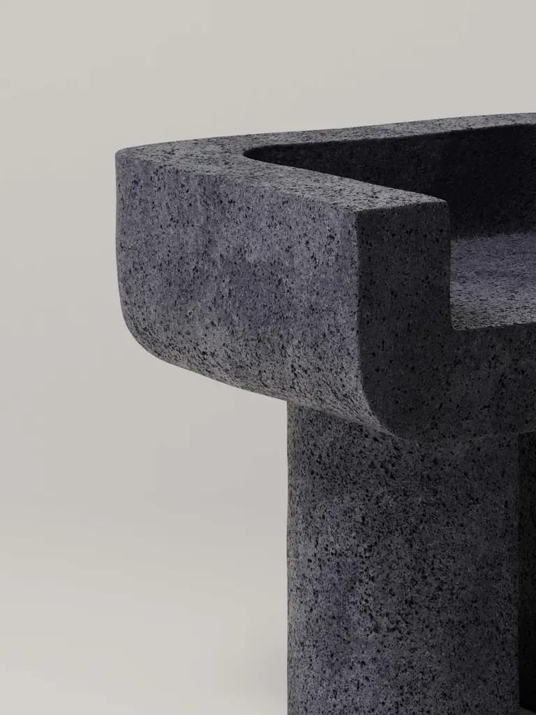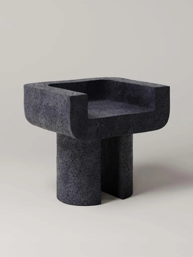 Carved from a single stone, the soft curves, and powerful stature of the M_001 Chair offer a grounded almost ritualistic presence. Its simple and subtly refined geometry beckon you to sit upon its throne like form. Suitable for indoor/outdoor use.Numbered and SignedGiven the unique nature of stone, each piece will vary in look.Available in Travertine, Oak, and Walnut