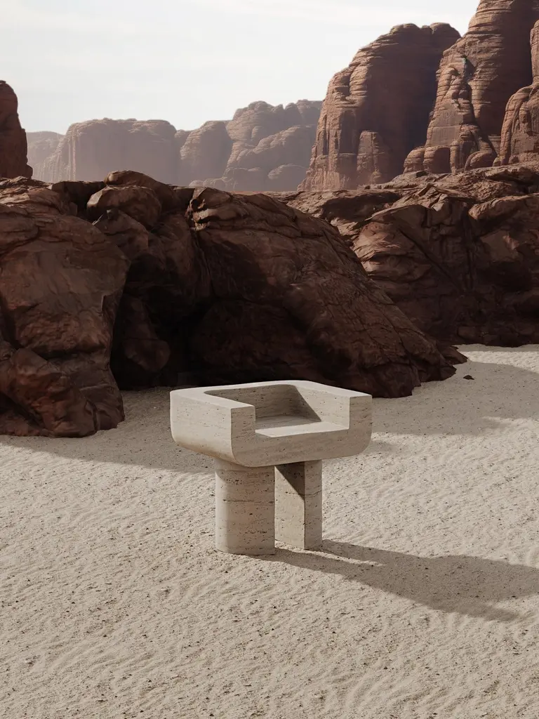 M_001 Chair By Monolith Studio, Travertine