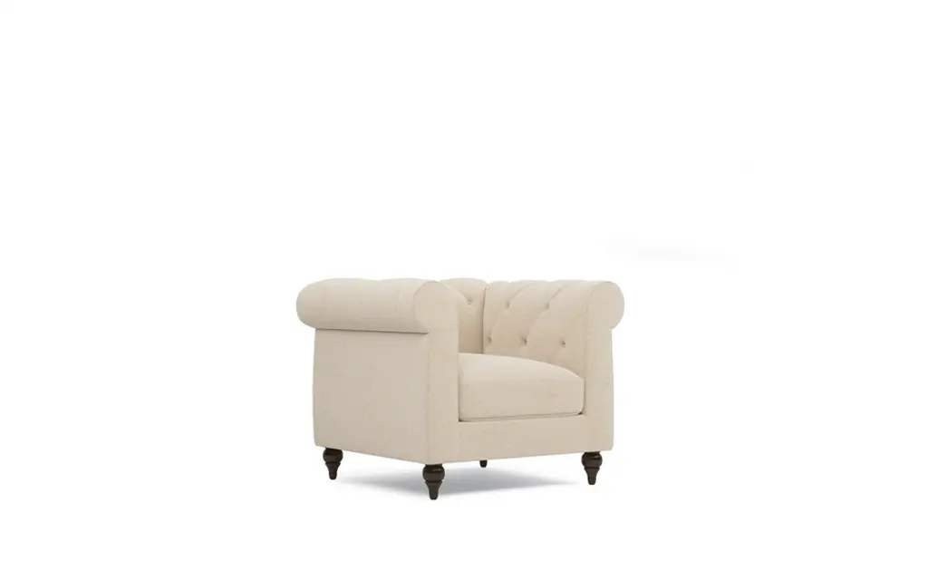 Classically inspired with modern appeal, the Madeline chair brings a stylish touch to any modern or traditional home. Turned wood legs with brass casters in the front pair beautifully with curved legs in the back, dressing up the silhouette. Soft yet supportive, the seat cushion is designed for supreme comfort, with a foam core surrounded by a blend of fiber, down, and feather fill. Choose from a variety of upholstery options, including linen, velvet, and performance fabrics.