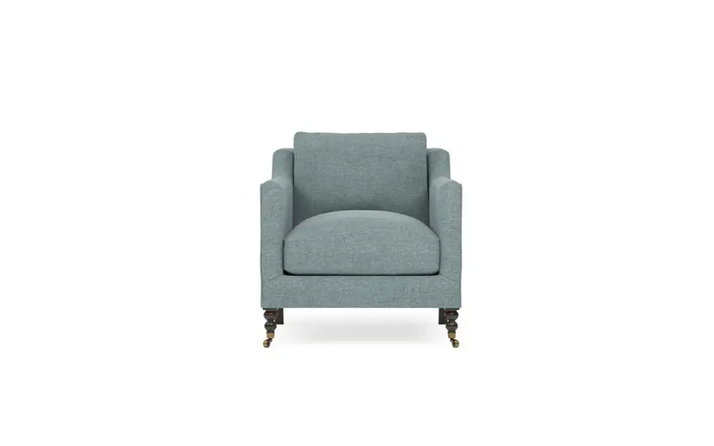 Classically inspired with modern appeal, the Madeline chair brings a stylish touch to any modern or traditional home. Turned wood legs with brass casters in the front pair beautifully with curved legs in the back, dressing up the silhouette. Soft yet supportive, the seat cushion is designed for supreme comfort, with a foam core surrounded by a blend of fiber, down, and feather fill. Choose from a variety of upholstery options, including linen, velvet, and performance fabrics.