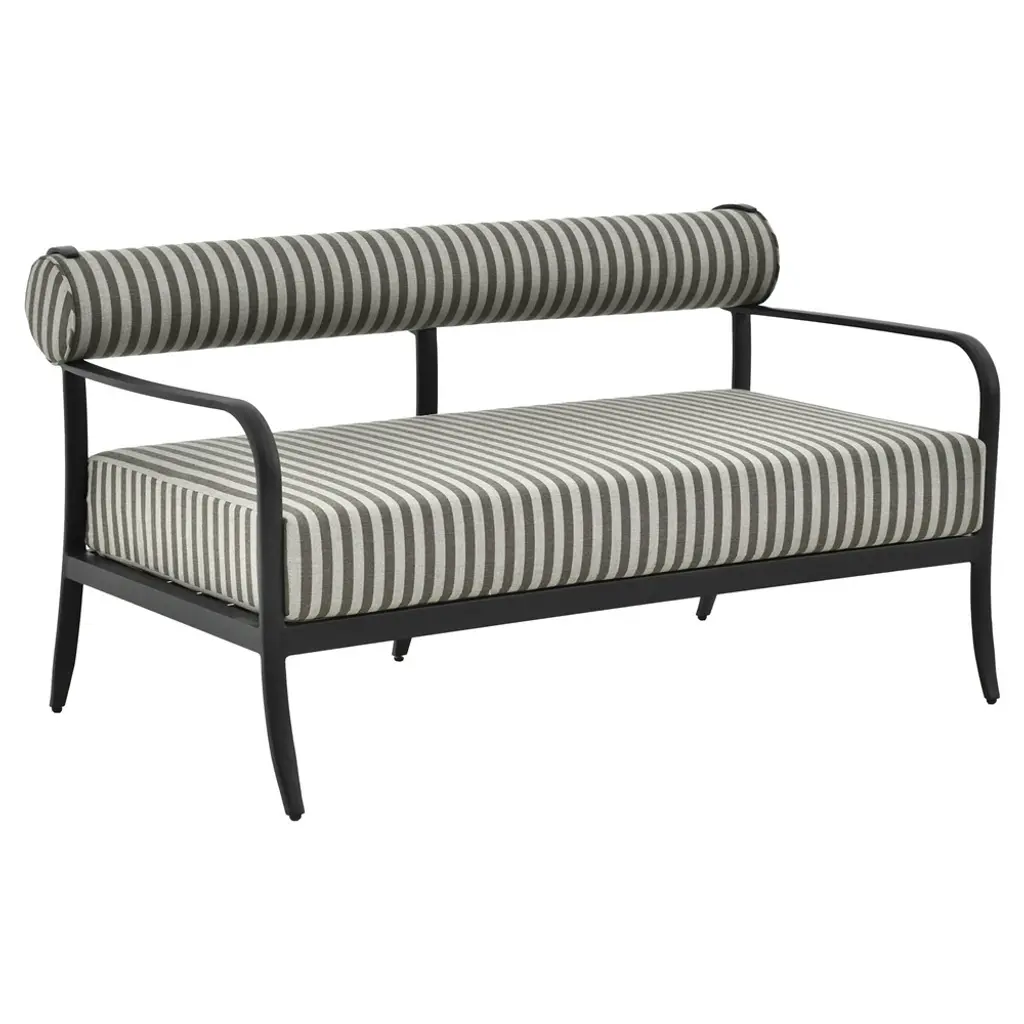 Madelle Modern Classic Grey Striped Sunbrella Black Aluminum Outdoor Arm Chair