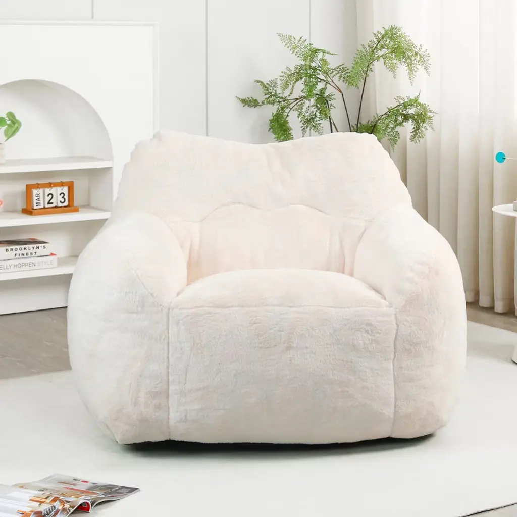 Maliang Bean Bag Sofa Chair With Armrests, Stuffed High-density Foam, Lazy Sofa Comfy Chairs, White