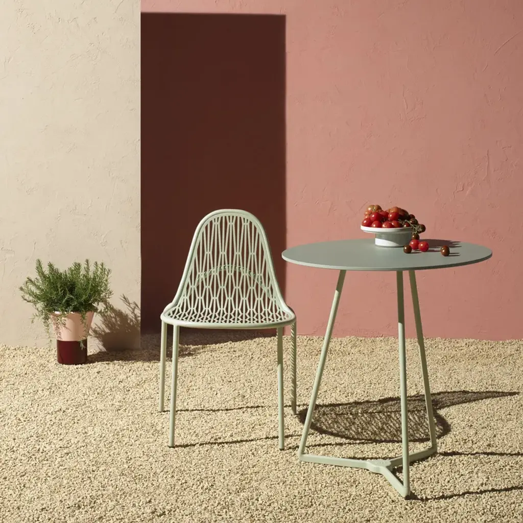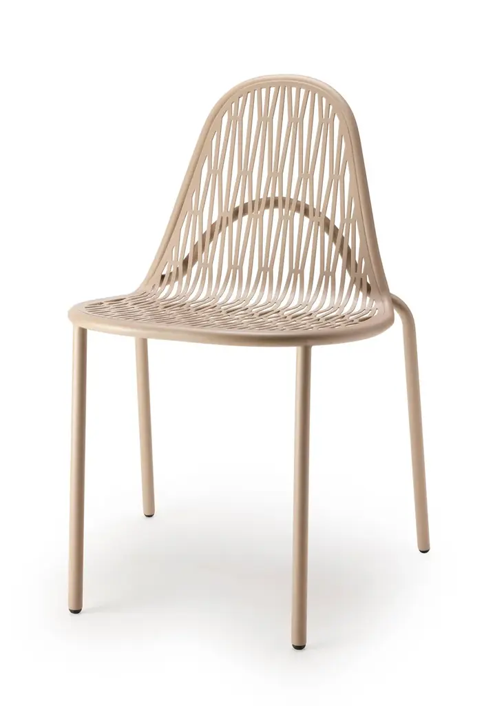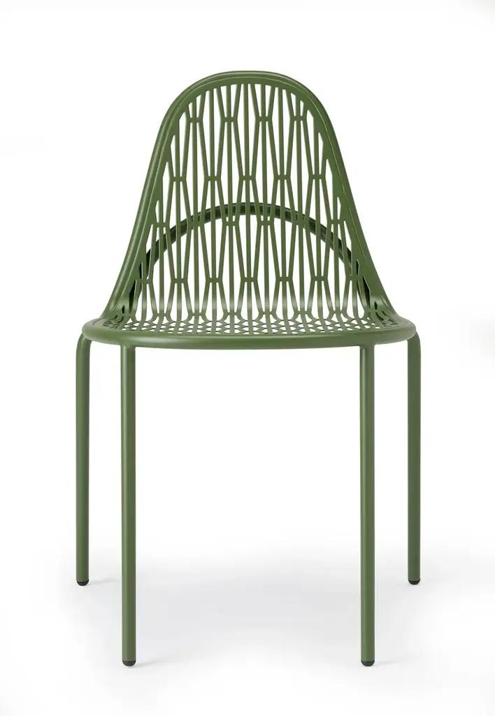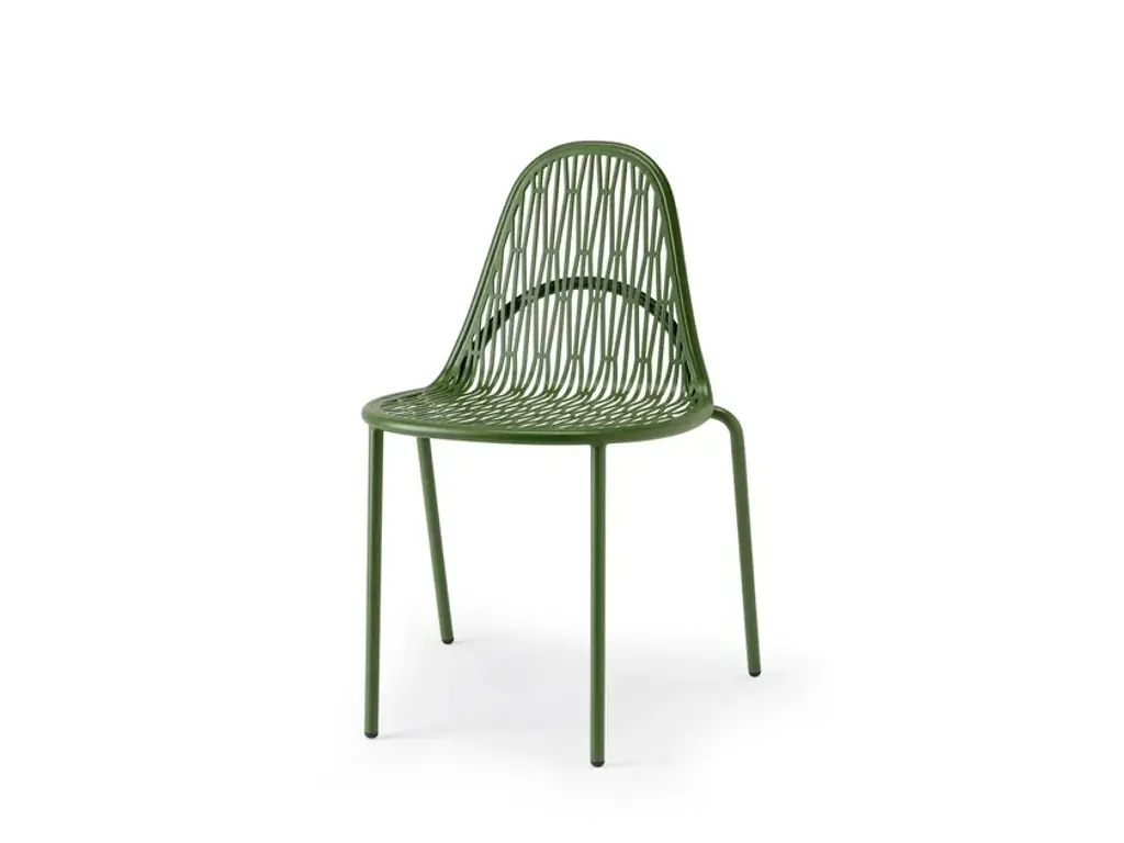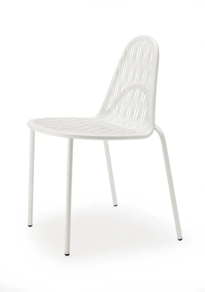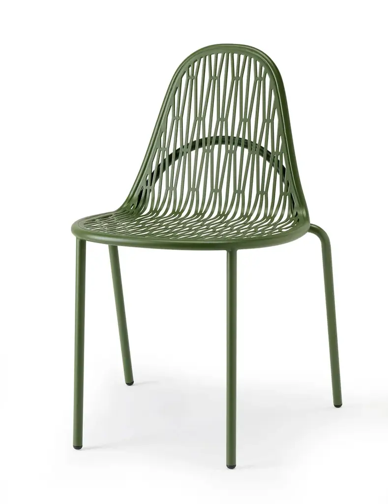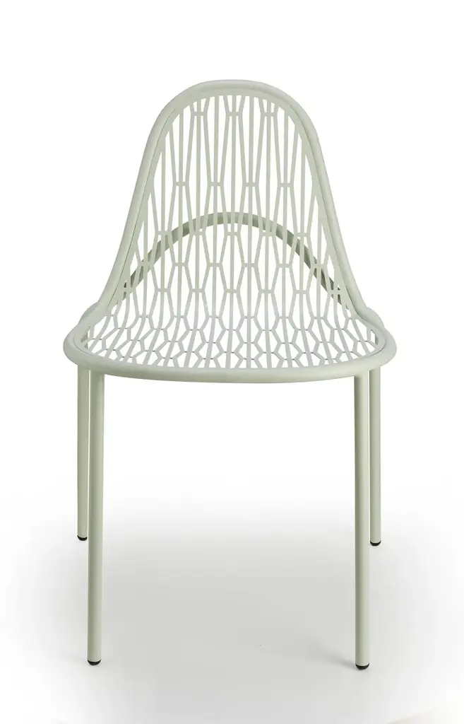 Despite its apparent simplicity, its design expresses a true production challenge: to extract the backrest and seat from a single perforated and calendered piece, and then weld them almost invisibly to the tubular frame. A particularly complex treatment that brings the metal close to its flexibilitylimit and softens its impenetrable coldness. Evoking the warp and weft of a fabric, but also the play of shadows of a tree canopy, Malvasia is a seat that lends itself to animate any outdoor space, even terraces and gardens.Simple, minimalist, perforated. Malvasia is the outdoor seat that projects graceful and rigorous weaves of light and shadow through its metal patterns, like the foliage of a tree or the texture of a fabric.