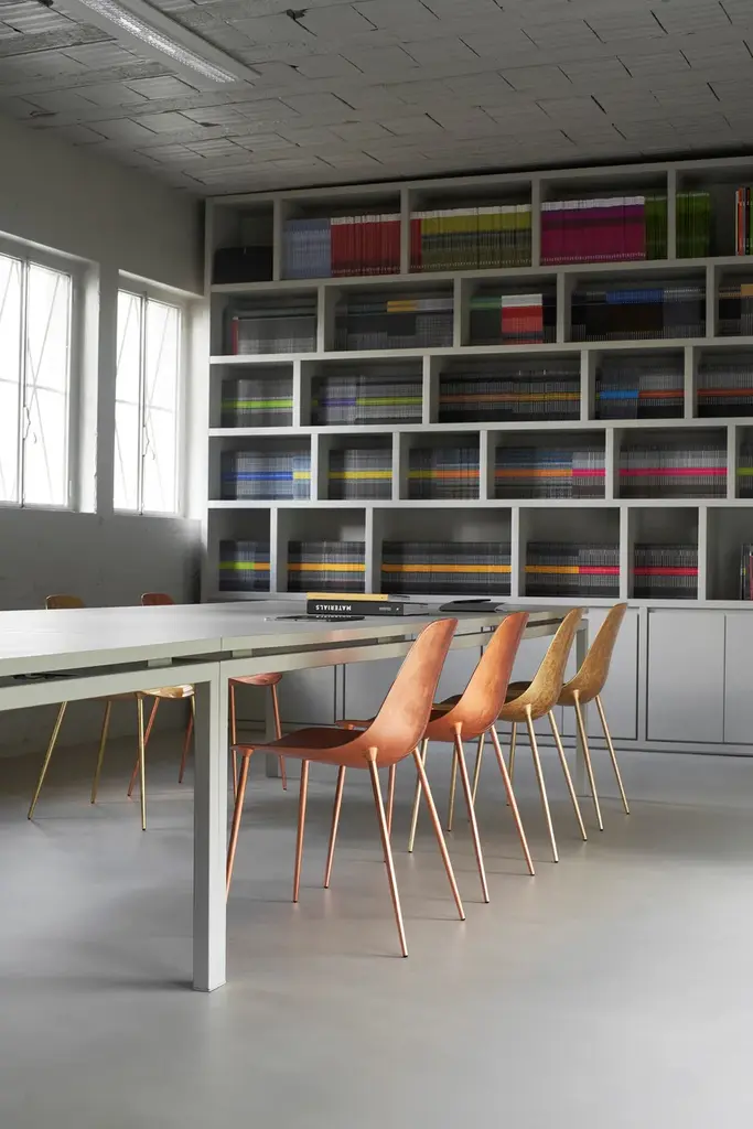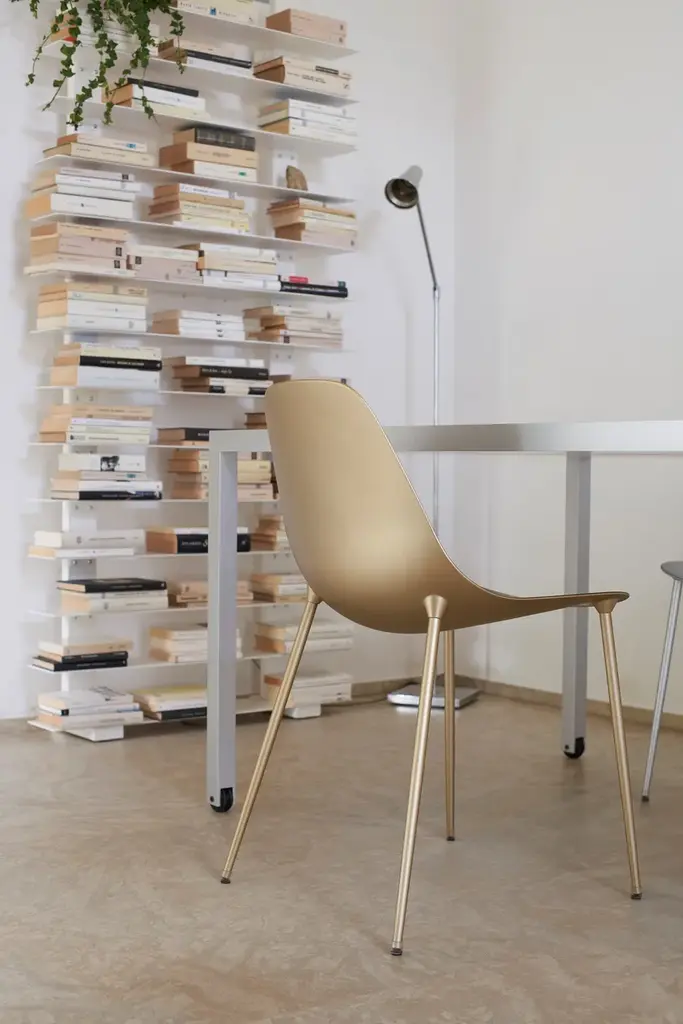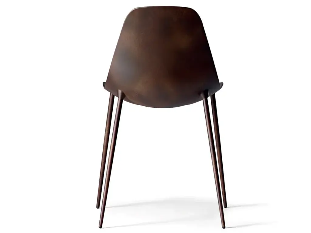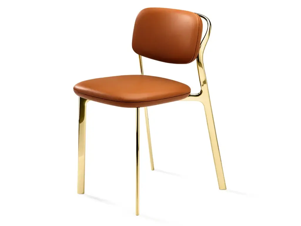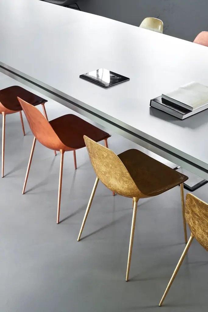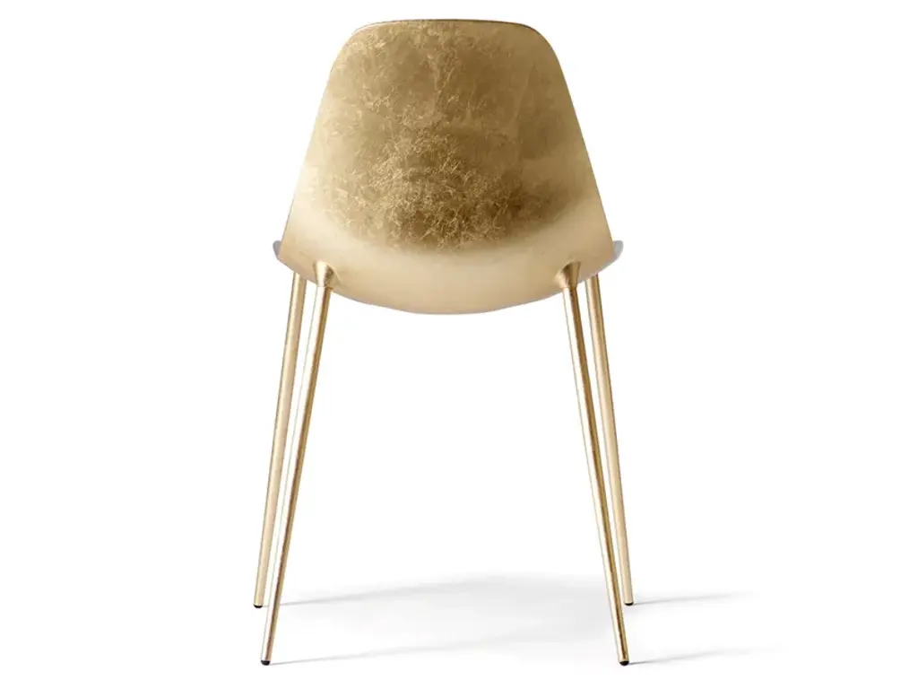 Chair with die-cast aluminum shell and steel structure. For indoor/outdoor use.Metallic finishes: silver, gold.Matt finishes: textured coating with concrete or bronze effect.Glossy finishes: aluminum with mirror finish, gold leaf, silver leaf, copper leaf.Accessories: foot caps, felt cushion.One, one hundred, one thousand Mammamia! You could very well say that when you realize the surprising versatility of this chair collection by Marcello Ziliani that embraces countless combinations and variants: stackable or non-stackable, with or without armrests, hard or upholstered.With its distinctive young and informal design, and its soft and sinuous lines, Mammamia has an ergonomic and welcoming seat and a light structure, features that provide the chair with a balanced, pleasant and enticing look.Glossy or matt, textured or rich, minimalist or decorated. It can be covered with light leaves – gold, silver, copper – hand-polished in the mirror version, cladded with finish that recalls materials like concrete and bronze, or give shimmering glows thanks to the new metallic gold and silver coatings.The seat also comes in soft upholstered versions with fabrics or leather, for an elegance that is second to none.A never-ending range of choices for this chair with a die-cast aluminium shell and steel structure, that has no intention of stopping surprising!Thanks to its almost infinite versions, it suits any indoor or covered outdoor environment. From the most contemporary and minimalist to the most traditional and refined Mammamia is always the perfect choice.Complied with UNI-EN 16139:2013 European Standards which determine the strenght, durability and safety requirements of chairs for contract use, it is suitable both for public and private spaces.
