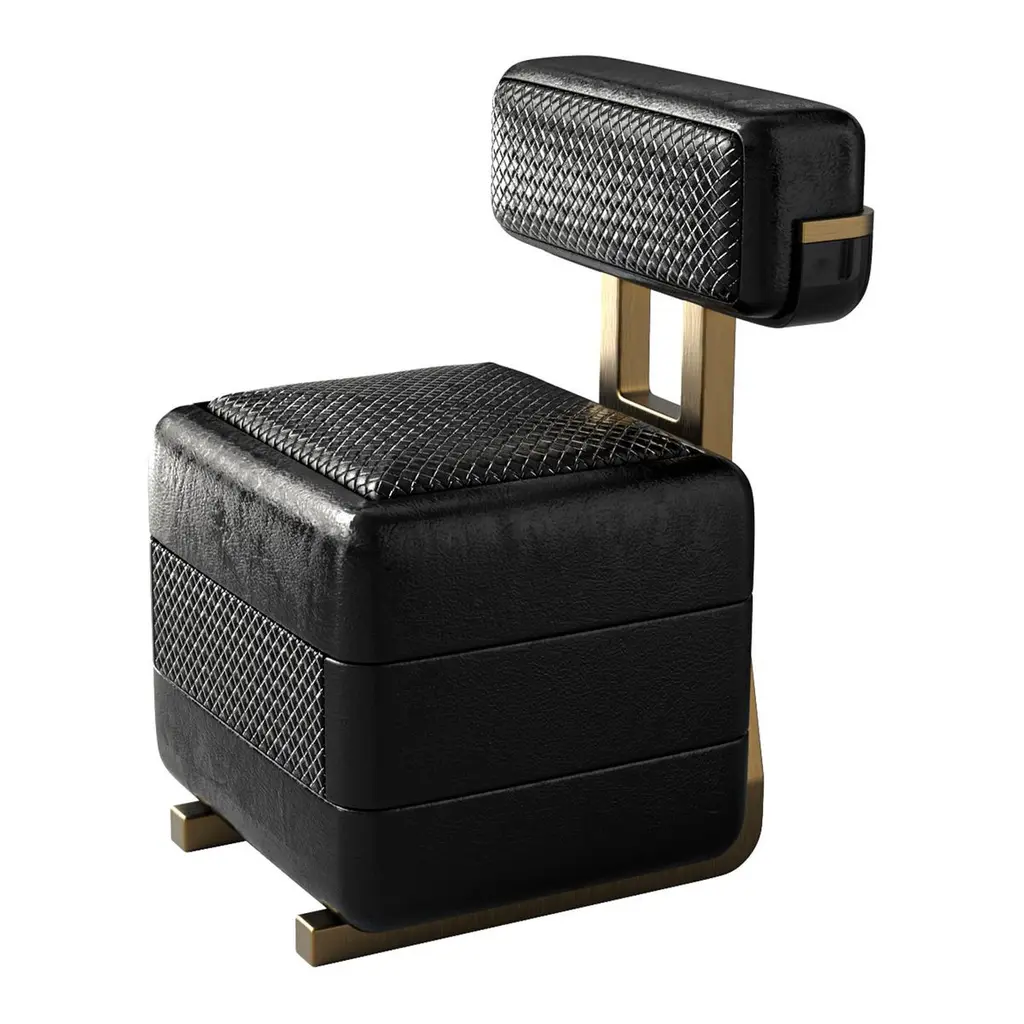 "Manchot" Chair, With Bronze, Tailor Made Woven Leather, Handmade, Istanbul