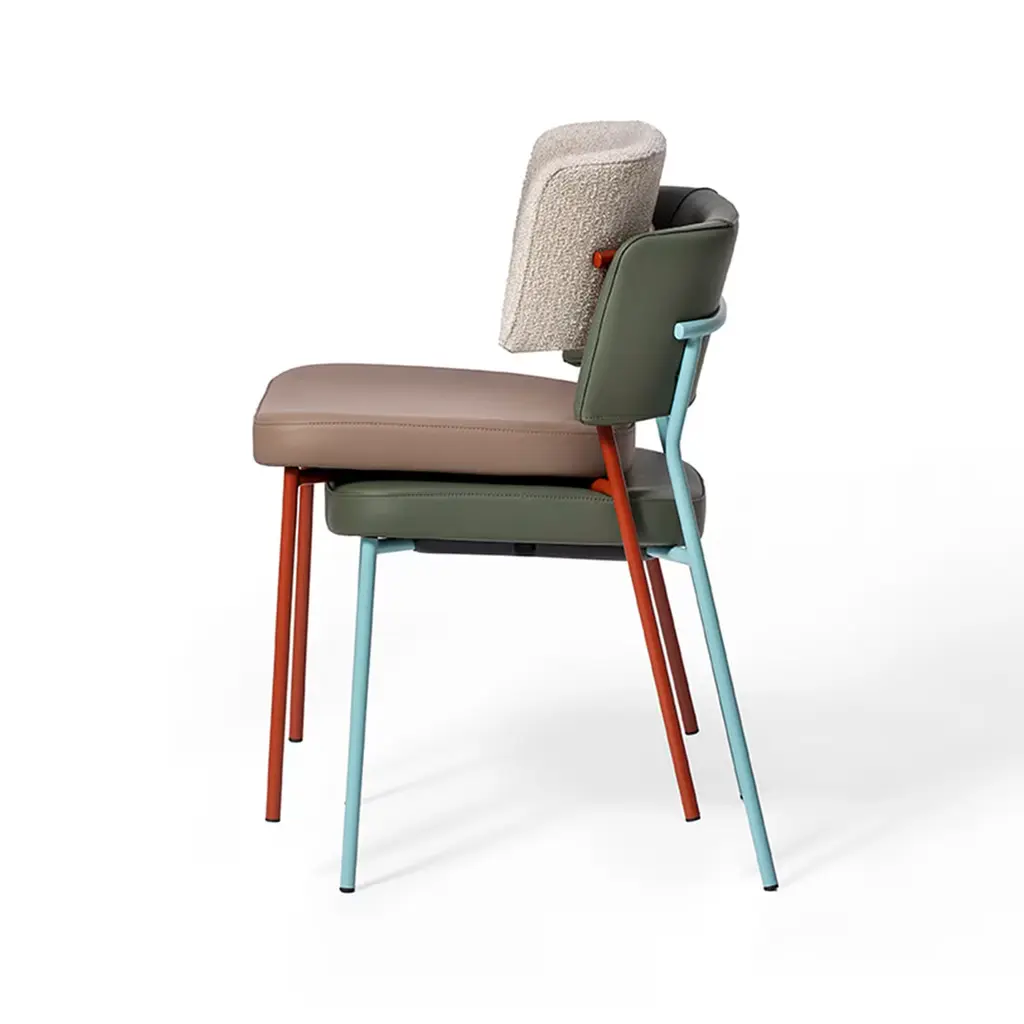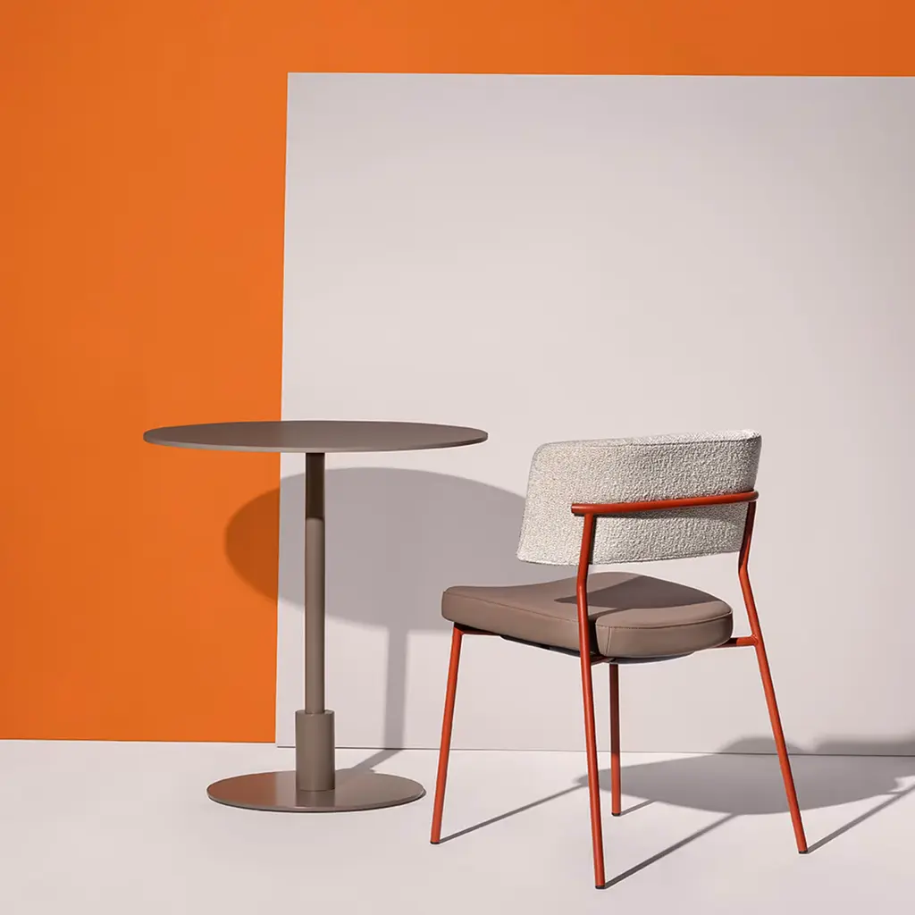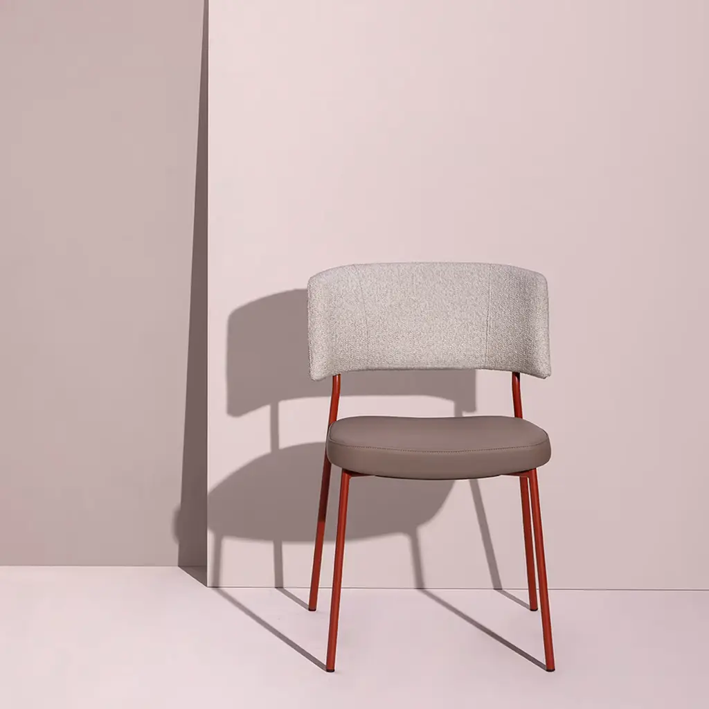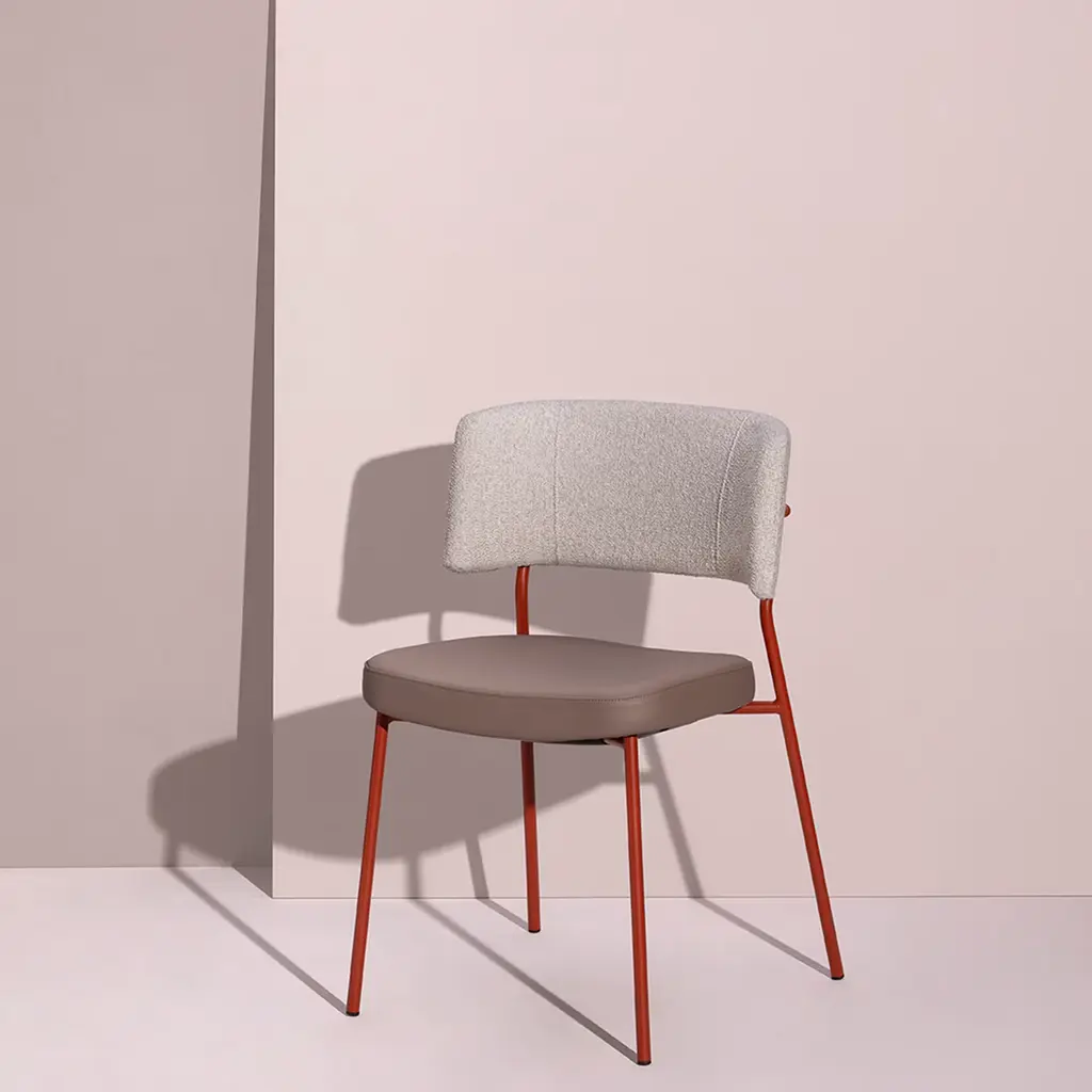 Marlen Met Im Beige Fabric & Brick-Red Metal Chair By Ep Studio