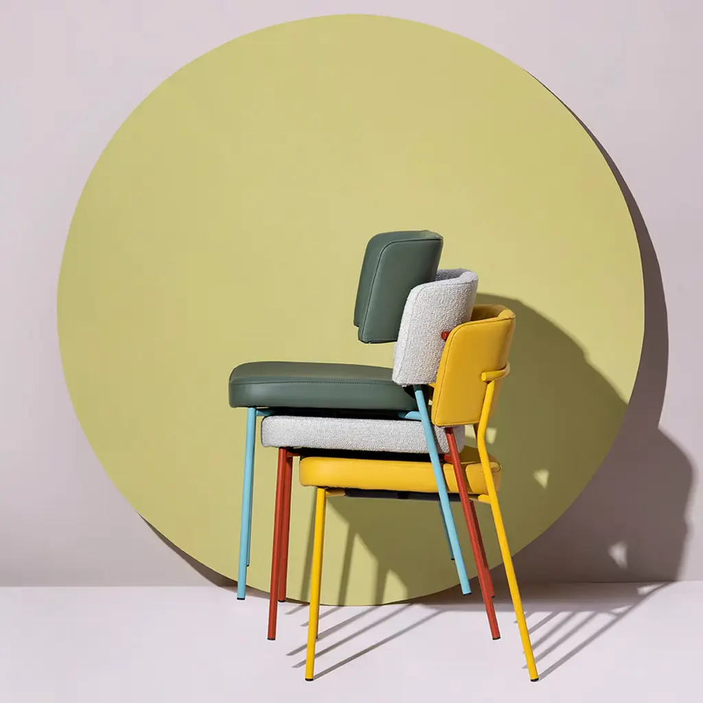 Designed with solidity and ergonomics in mind without ever renouncing elegance, this chair makes for a refined addition to both private and contract interiors. First-quality beige-toned fabric (cat. E Axium FR 01 Kobe) lends sartorial allure to the padded seat and embracing backrest, which complement the sturdy yet lightweight tubular metal frame offered in a sophisticated brick-red finish.