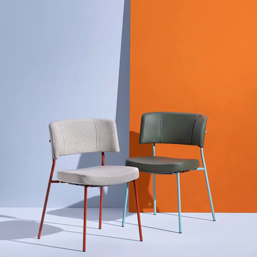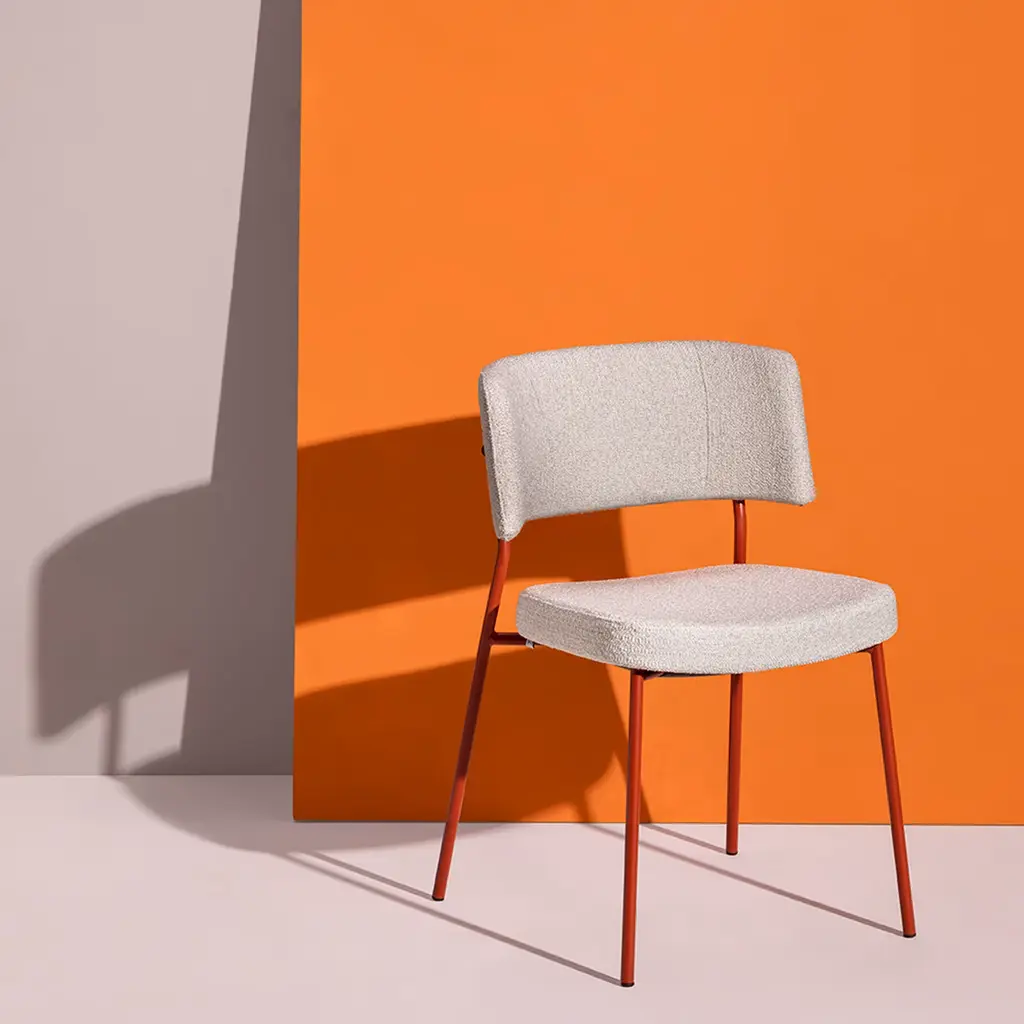 Marlen Met Im Beige Fabric & Brick-Red Metal Chair By Ep Studio