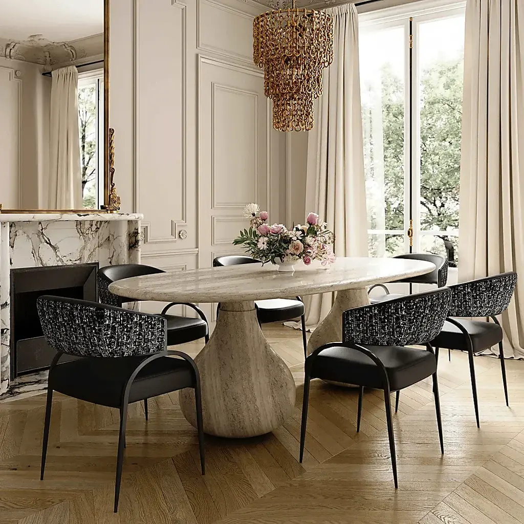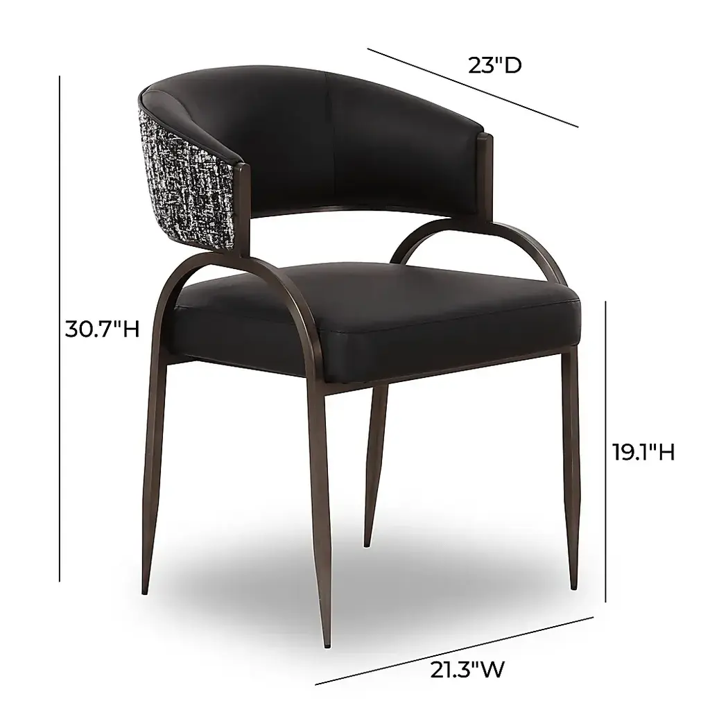 Meet the Marscoms I black armchair. Each piece pairs sleek black iron with your choice of easy-to-clean vegan leather, and luscious fabrics rich in texture and built to repel spills. Style-forward yet everyday-friendly, these sculptural silhouettes bring modern contrasts and cool composure to any space.