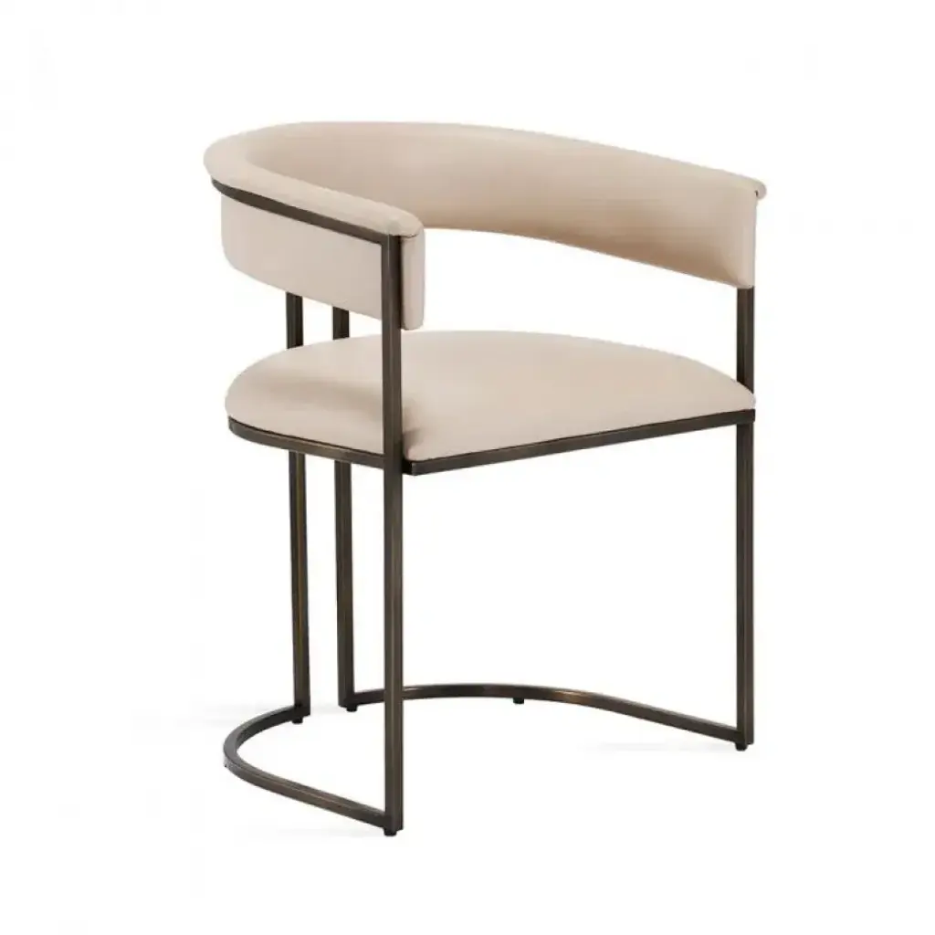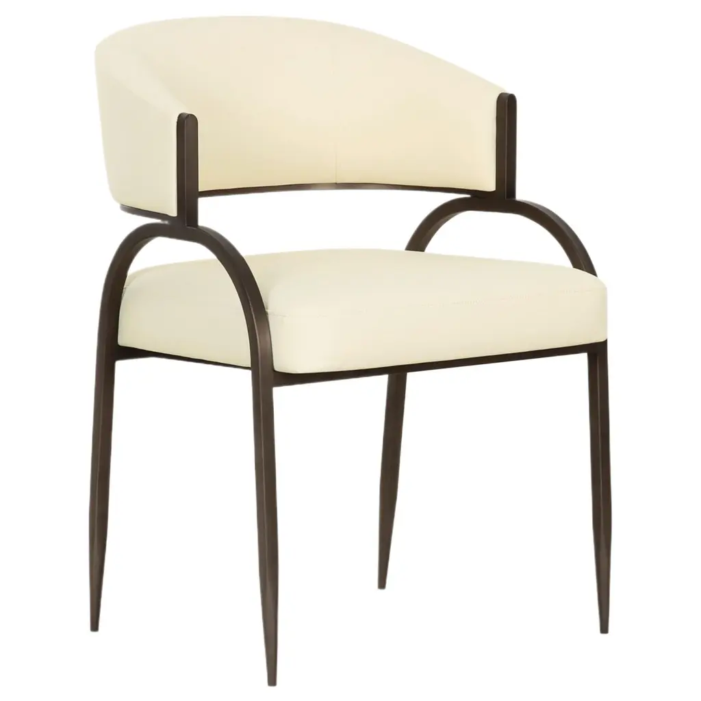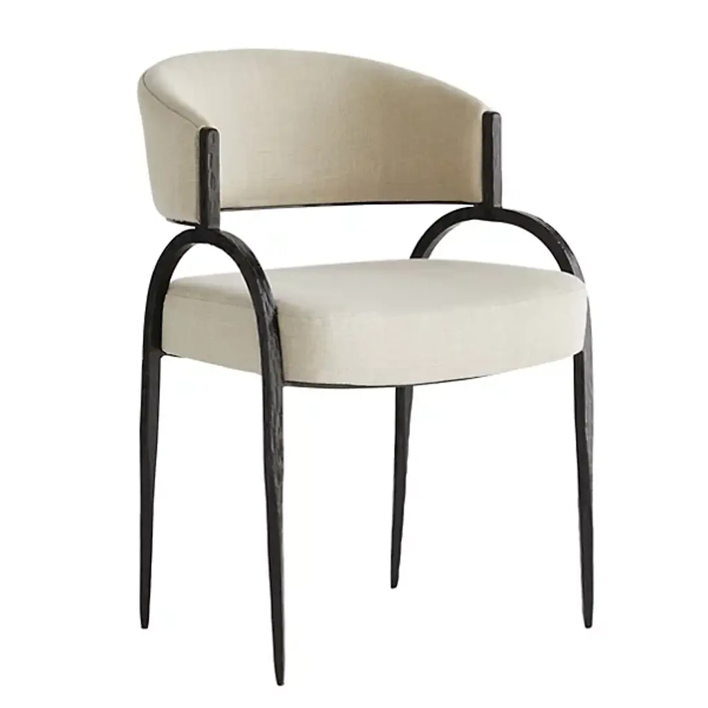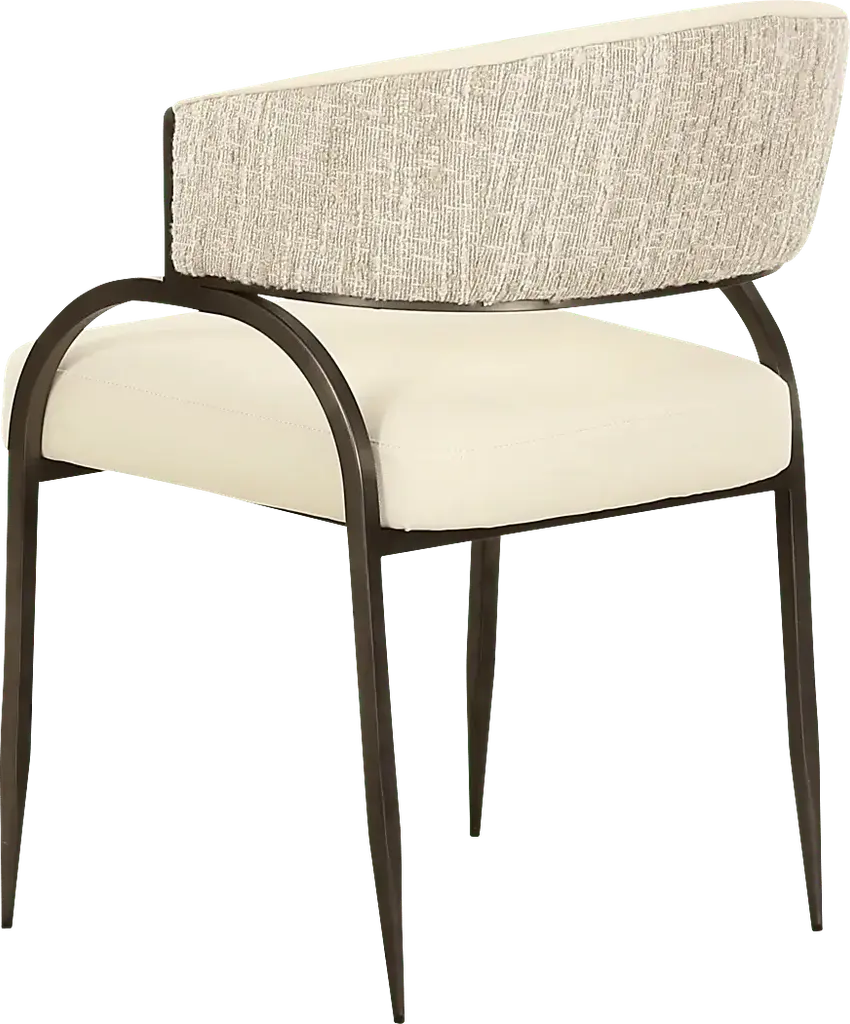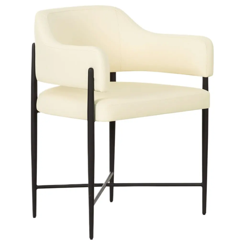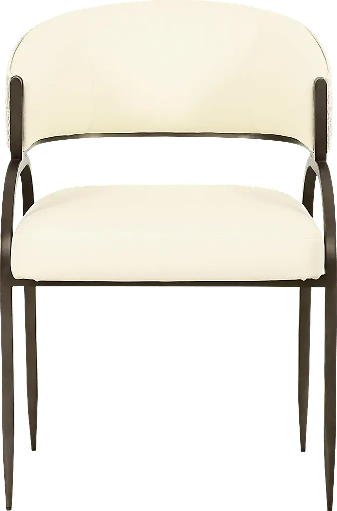 Meet the Marscoms I cream armchair. Each piece pairs sleek black iron with your choice of easy-to-clean vegan leather, and luscious fabrics rich in texture and built to repel spills. Style-forward yet everyday-friendly, these sculptural silhouettes bring modern contrasts and cool composure to any space.
