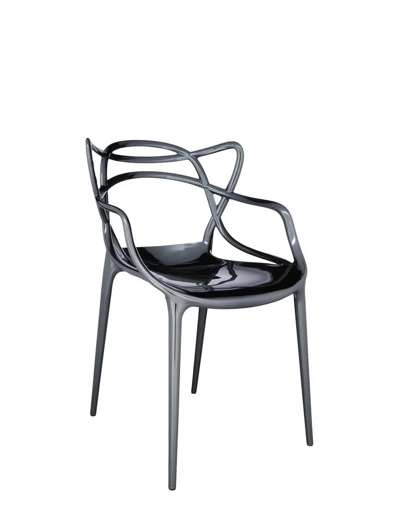 The Masters chair is a clear tribute to three symbol-chairs, reworked and reinterpreted by Starck’s creative genius. The unmistakable silhouettes of Arne Jacobsen’s “Serie 7”, Eero Saarinen’s “Tulip Armchair” and Charles Eames’ “Eiffel Chair” entwine in a sinuous hybrid, creating a fusion of original and attractive styles. Light and practical, Masters can also be used outdoors. Also available in metallic finishes which convey and extra special effect.