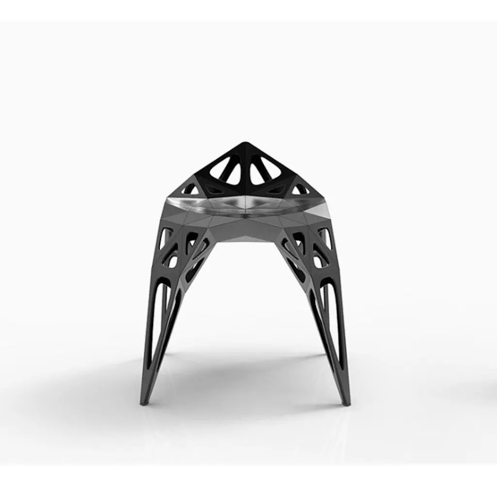 3 official types chairs / availablesoliddotsframe2 colors official / available / finish in polish/mattblacksilverFurniture designer Zhoujie Zhang is known for the integration of automated digital design and elements of spontaneity and chance. “I believe that objects in the digital world will grow as nature does, in an organic way, but we just need to discover why and how that happens,” he once said. To produce his objects, Zhang inputs basic mathematical instructions into a computer and allows the program to generate their forms. The pieces are then cut, assembled, and polished by hand in his in-house workshop; consequently, they exist in highly limited edition sizes. In the future, he envisions using a method of production with the aid of artificial intelligence, in which he takes as little control as possible. Zhang received a degree in product design in China, and an MA in industrial design from Central Saint Martins in London.