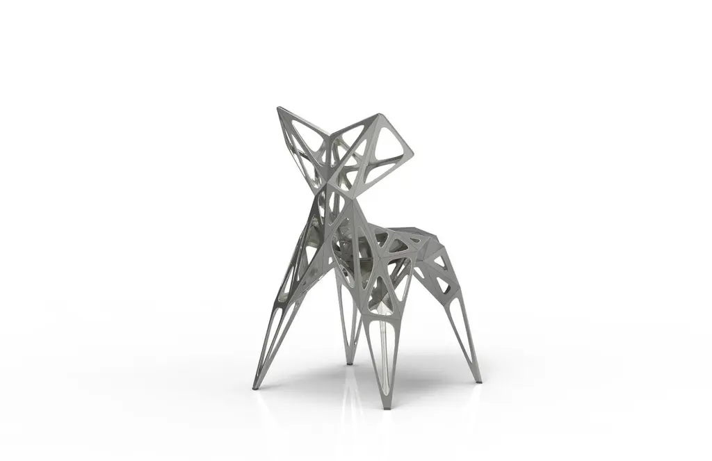 Outdoor and indoor3 official types chairs / availableSolidDotsFrame2 colors official / available / finish in polish/mattBlackSilverFurniture designer Zhoujie Zhang is known for the integration of automated digital design and elements of spontaneity and chance. “I believe that objects in the digital world will grow as nature does, in an organic way, but we just need to discover why and how that happens,” he once said. To produce his objects, Zhang inputs basic mathematical instructions into a computer and allows the program to generate their forms. The pieces are then cut, assembled, and polished by hand in his in-house workshop; consequently, they exist in highly limited edition sizes. In the future, he envisions using a method of production with the aid of artificial intelligence, in which he takes as little control as possible. Zhang received a degree in product design in China, and an MA in industrial design from Central Saint Martins in London.