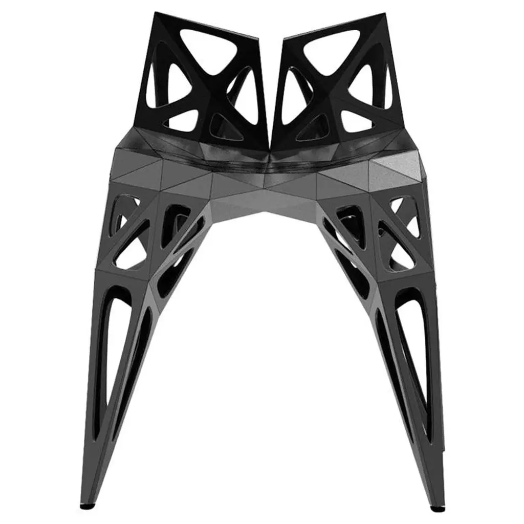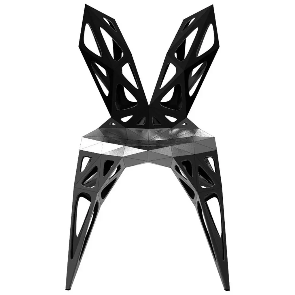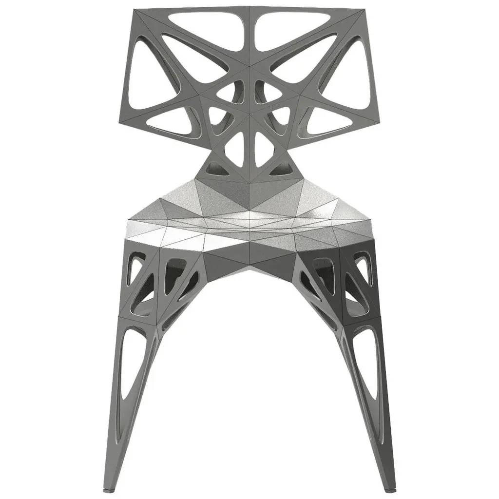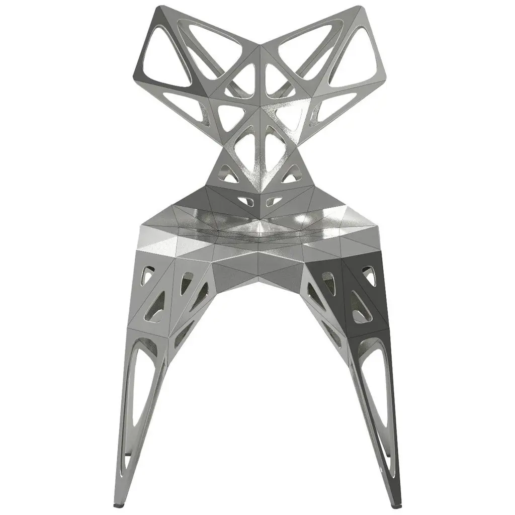 Outdoor and indoor4 official types chairs / availablesoliddotsframe2 colors official / available / finish in polish/matteblacksilverFurniture designer Zhoujie Zhang is known for the integration of automated digital design and elements of spontaneity and chance. “I believe that objects in the digital world will grow as nature does, in an organic way, but we just need to discover why and how that happens,” he once said. To produce his objects, Zhang inputs basic mathematical instructions into a computer and allows the program to generate their forms. The pieces are then cut, assembled, and polished by hand in his in-house workshop; consequently, they exist in highly limited edition sizes. In the future, he envisions using a method of production with the aid of artificial intelligence, in which he takes as little control as possible. Zhang received a degree in product design in China, and an MA in Industrial Design from Central Saint Martins in London.
