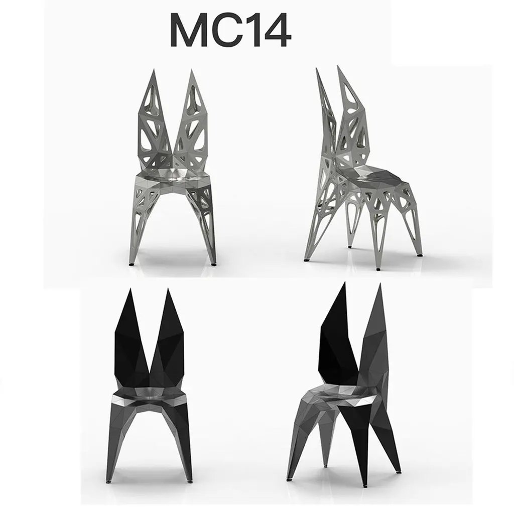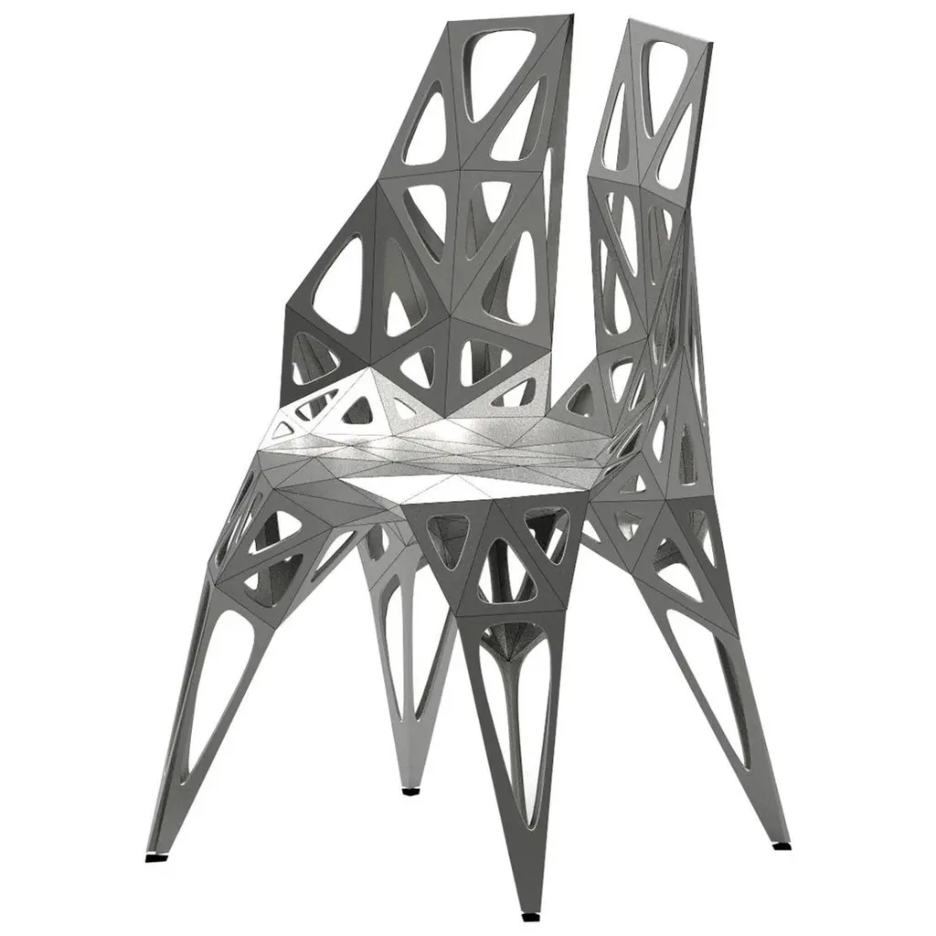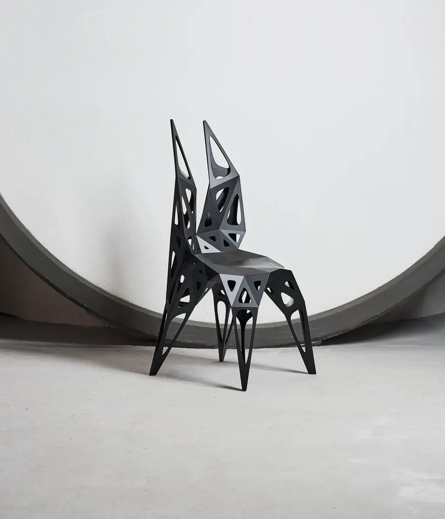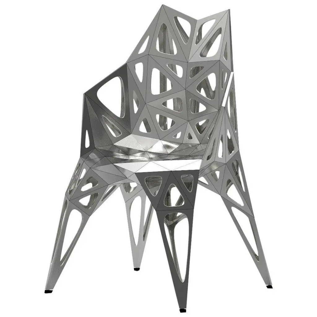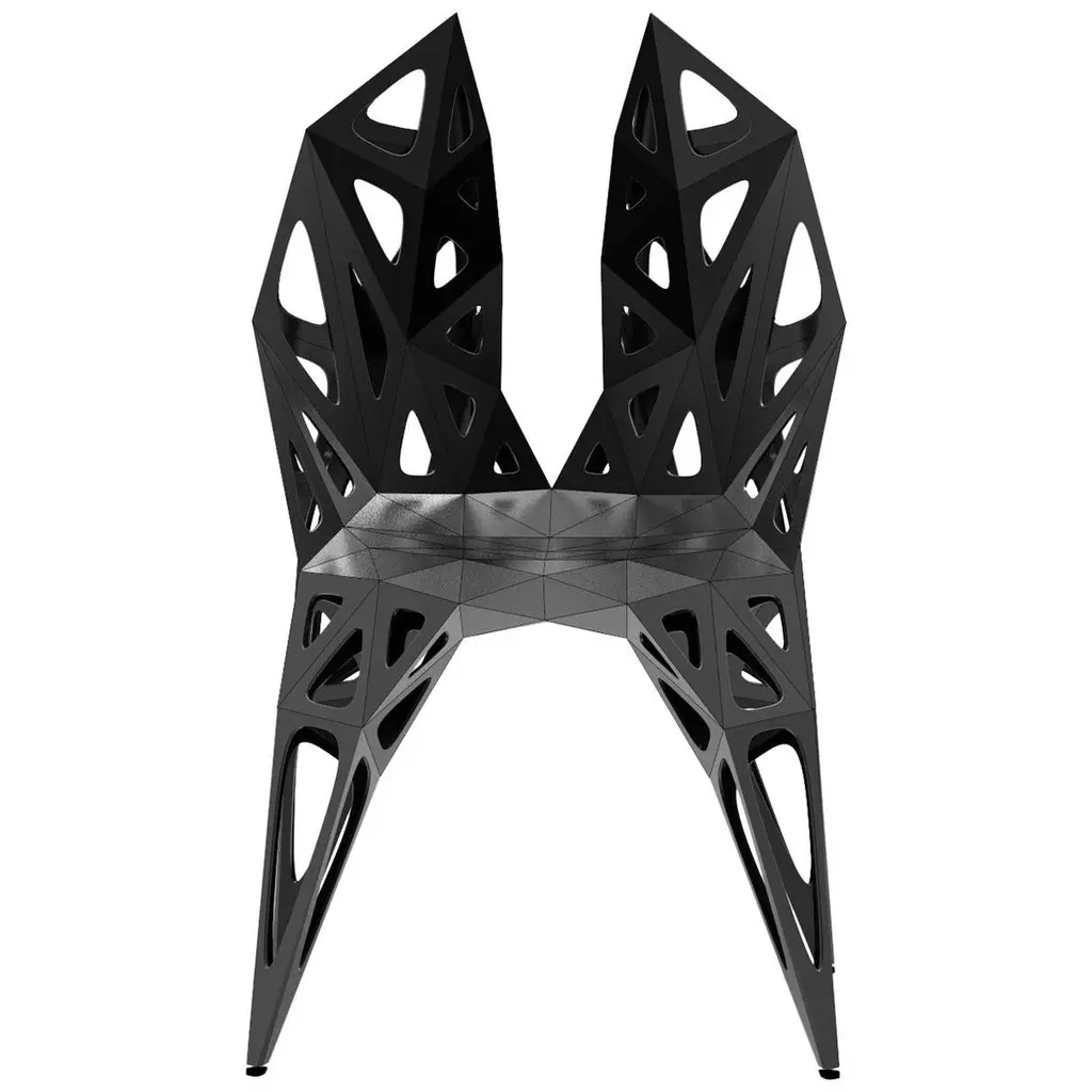 Outdoor and indoor4 official types chairs / availablesoliddotsframe2 colors official / available / finish in polish/matteblacksilverFurniture designer Zhoujie Zhang is known for the integration of automated digital design and elements of spontaneity and chance. “I believe that objects in the digital world will grow as nature does, in an organic way, but we just need to discover why and how that happens,” he once said. To produce his objects, Zhang inputs basic mathematical instructions into a computer and allows the program to generate their forms. The pieces are then cut, assembled, and polished by hand in his in-house workshop; consequently, they exist in highly limited edition sizes. In the future, he envisions using a method of production with the aid of artificial intelligence, in which he takes as little control as possible. Zhang received a degree in product design in China, and an MA in Industrial Design from Central Saint Martins in London.