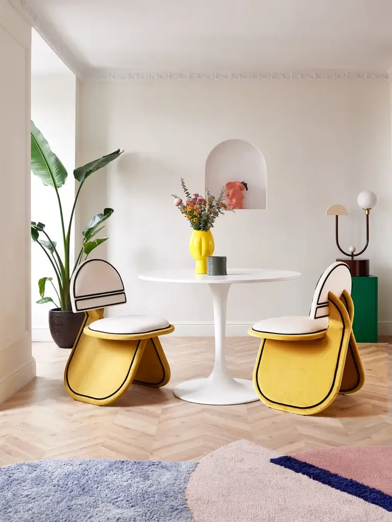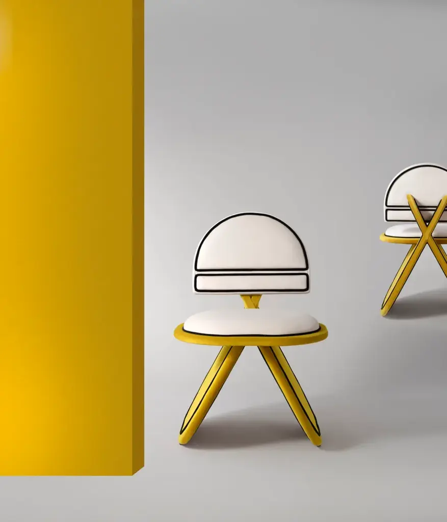 The meco chair is characterized by its complex X-shaped structure, creating a perfect balance crowned by the seat and the shape of the backrest. Its curved and pure shapes evoke the elegance and purity of Japanese culture, always with that picaresque and fun touch that characterizes all the pieces in our collection.MATERIALSWooden structure - Velvet