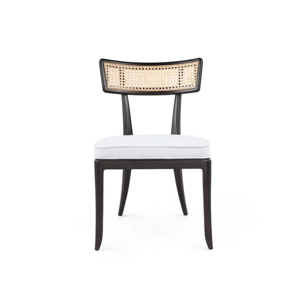 A pierced fretwork back is joined by an upholstered seat that is raised by graceful tapering legs.
