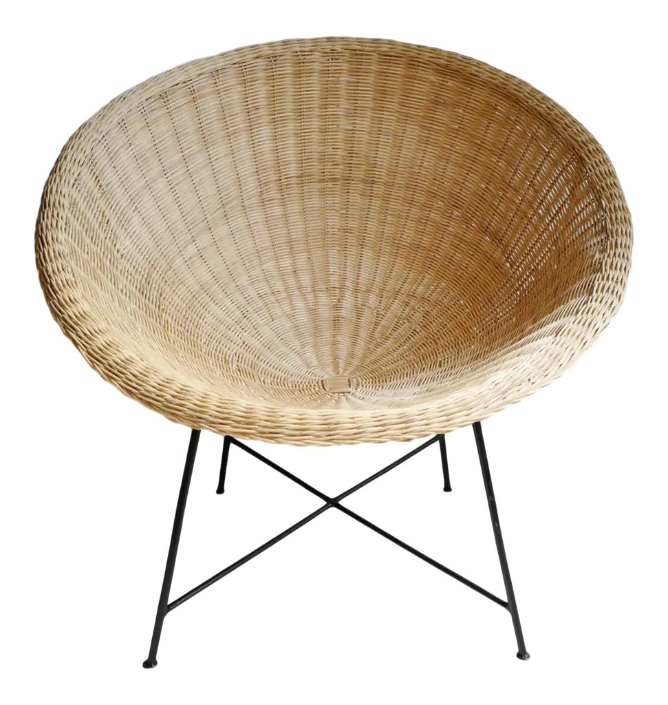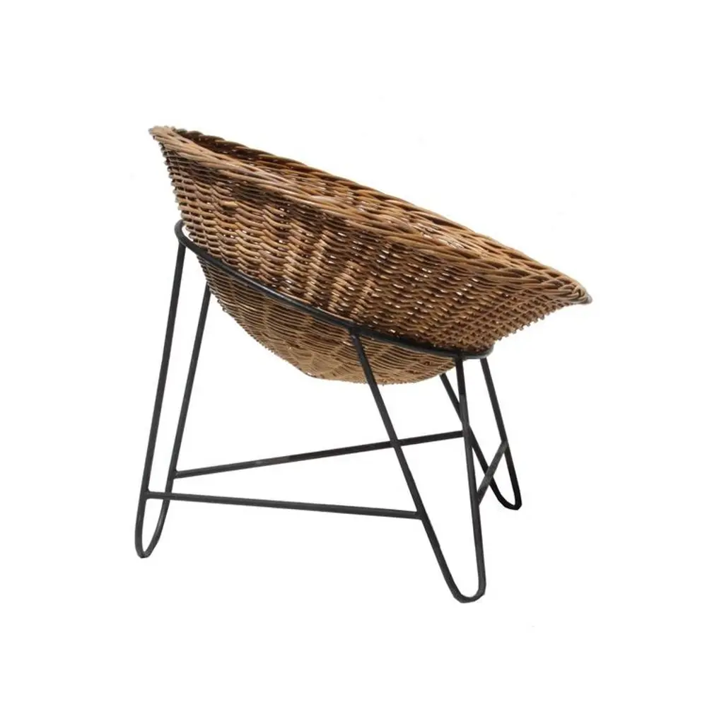 Metal Frame Wicker Chair In The Style Of Mathieu Matégot France 1960