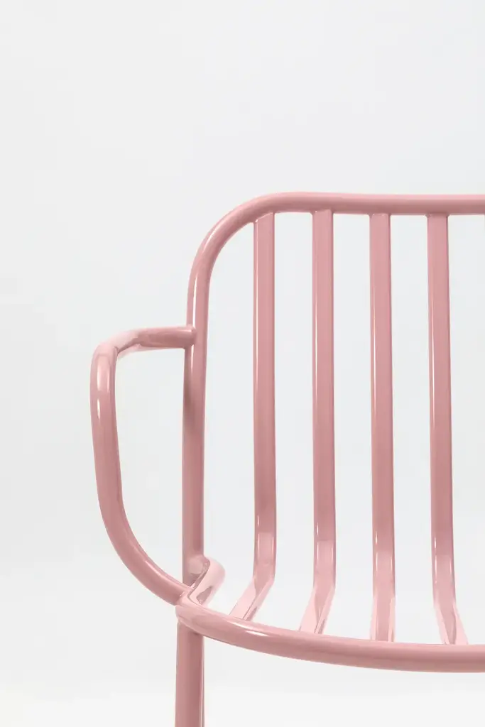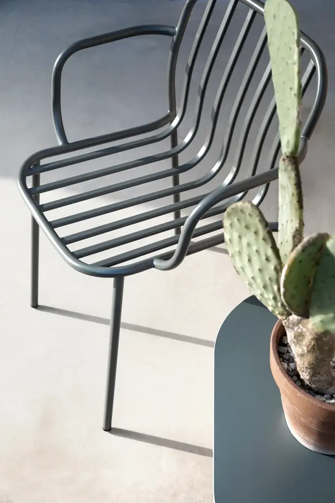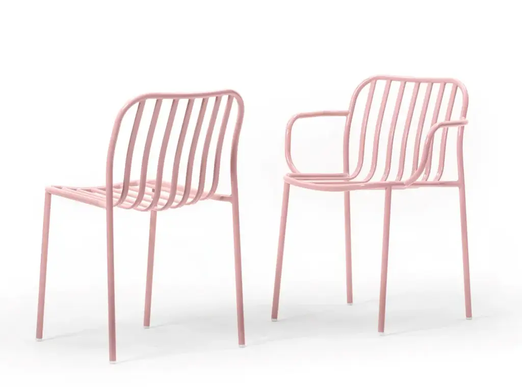Metis Line is a chair with oval painted metal wires that run along the seat / back, stackable, for indoor and outdoor.Metis collection, metal structure, with seat and back in perforated sheet metal, metal wire, wood or padded, stackable, for indoor or outdoor, ideal for hotels, restaurants.