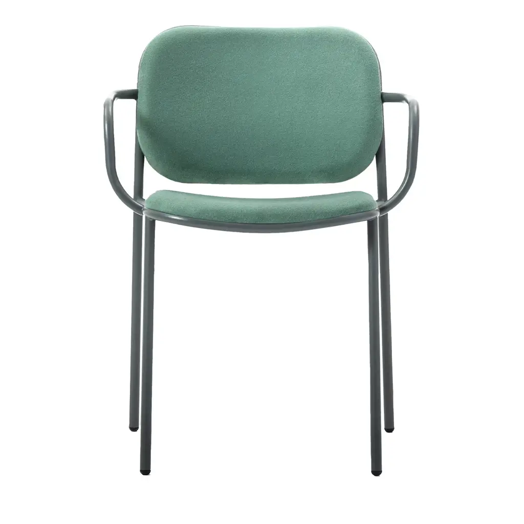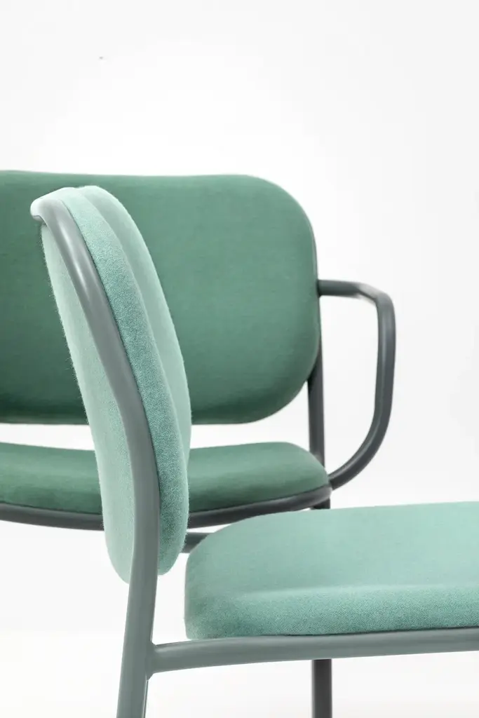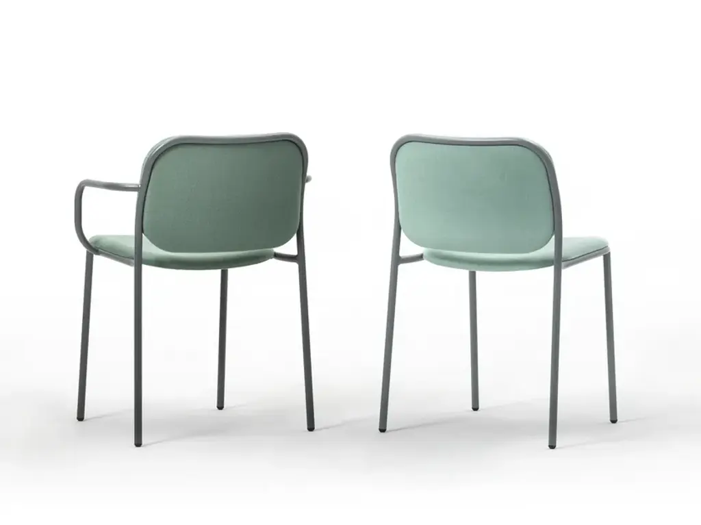 Metis Pad is a chair with painted metal structure, stackable with seat and back upholstered in fabric, leather, eco-leather, velvet.Metis collection, metal structure, with seat and back in perforated sheet metal, metal wire, wood or padded, stackable, for indoor or outdoor, ideal for hotels, restaurants.