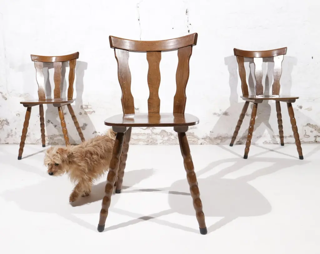 Mid-Century Brutlist Chairs Arch Cut-Outs Bobbin Legs