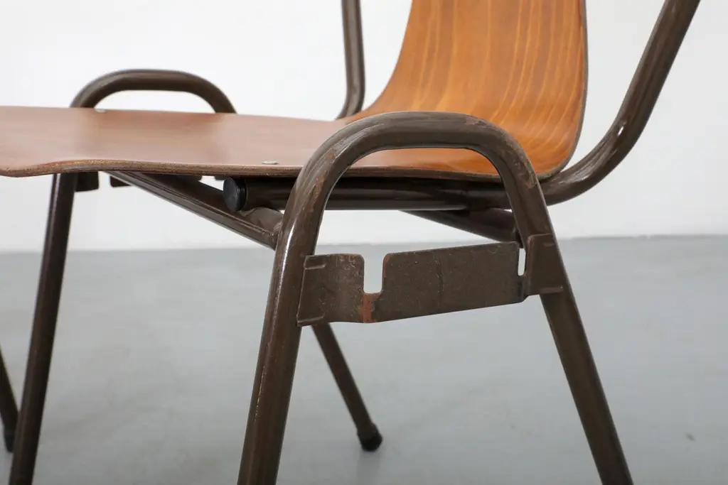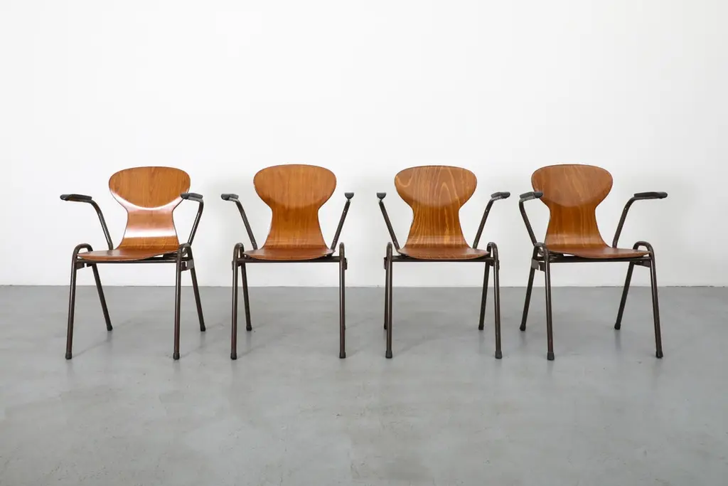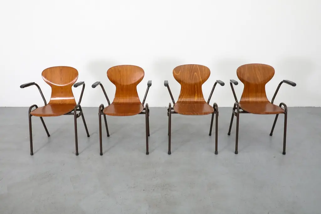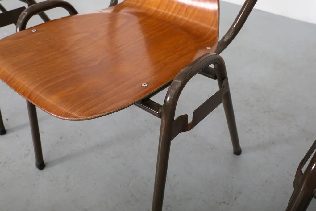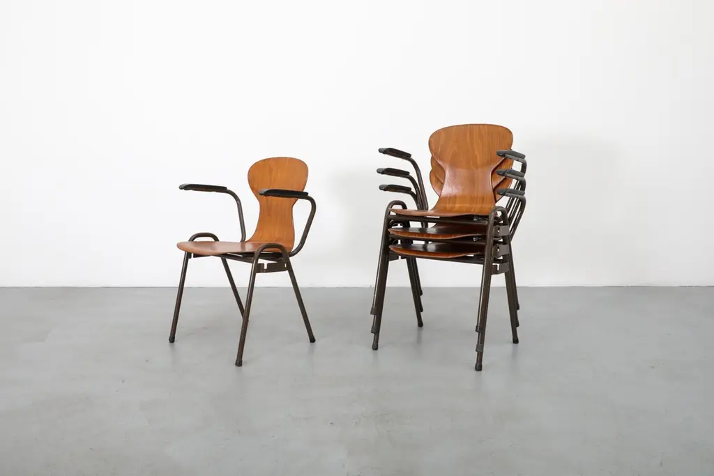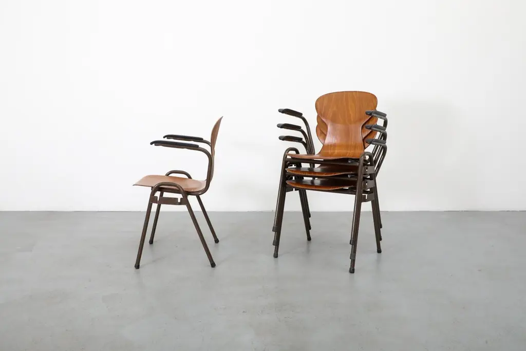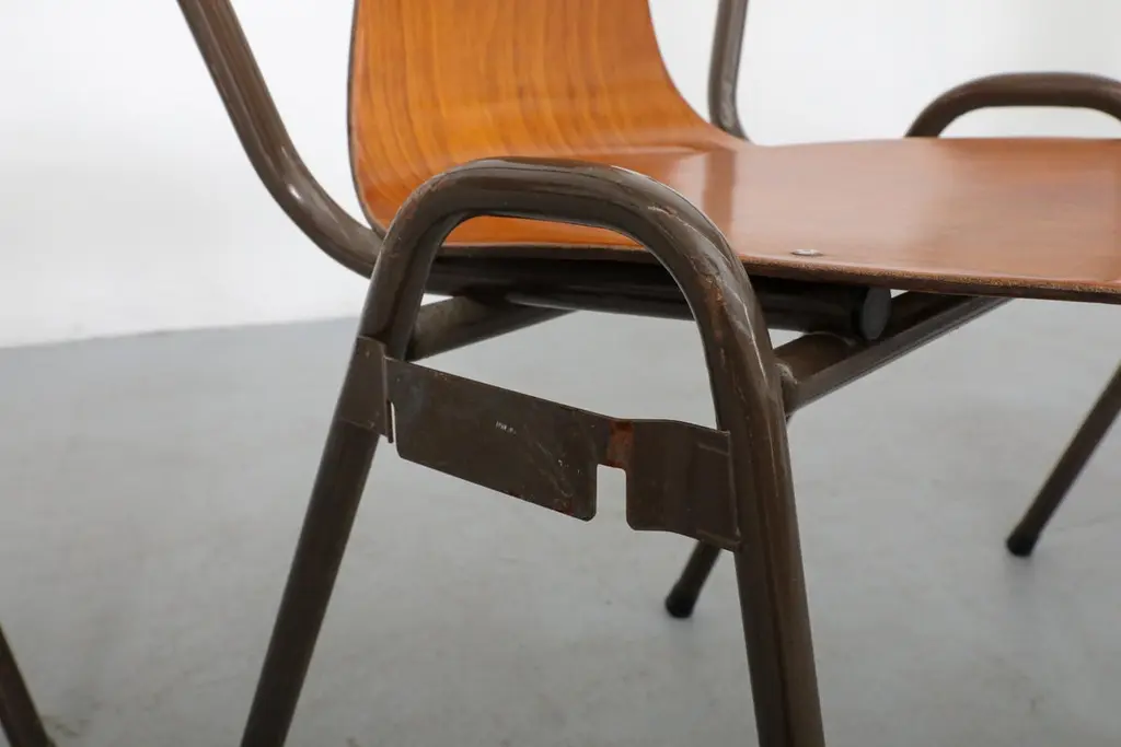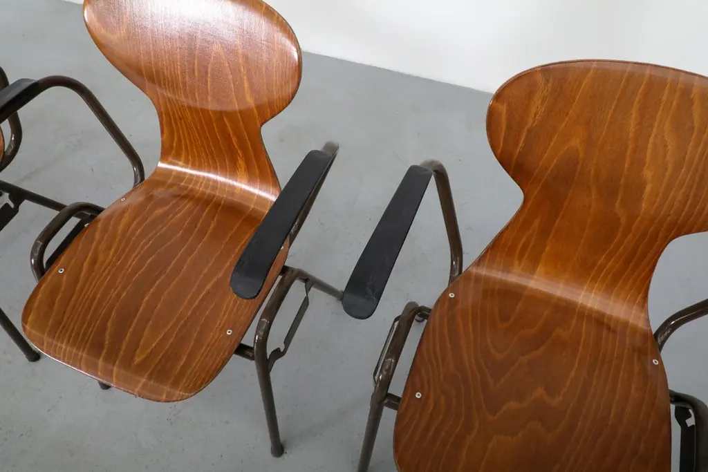 Mid-Century Fritz Hansen Style Teak Stacking School Chairs With Arms