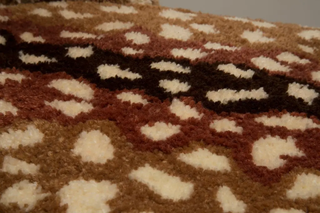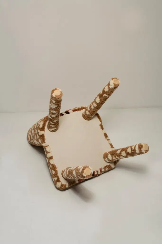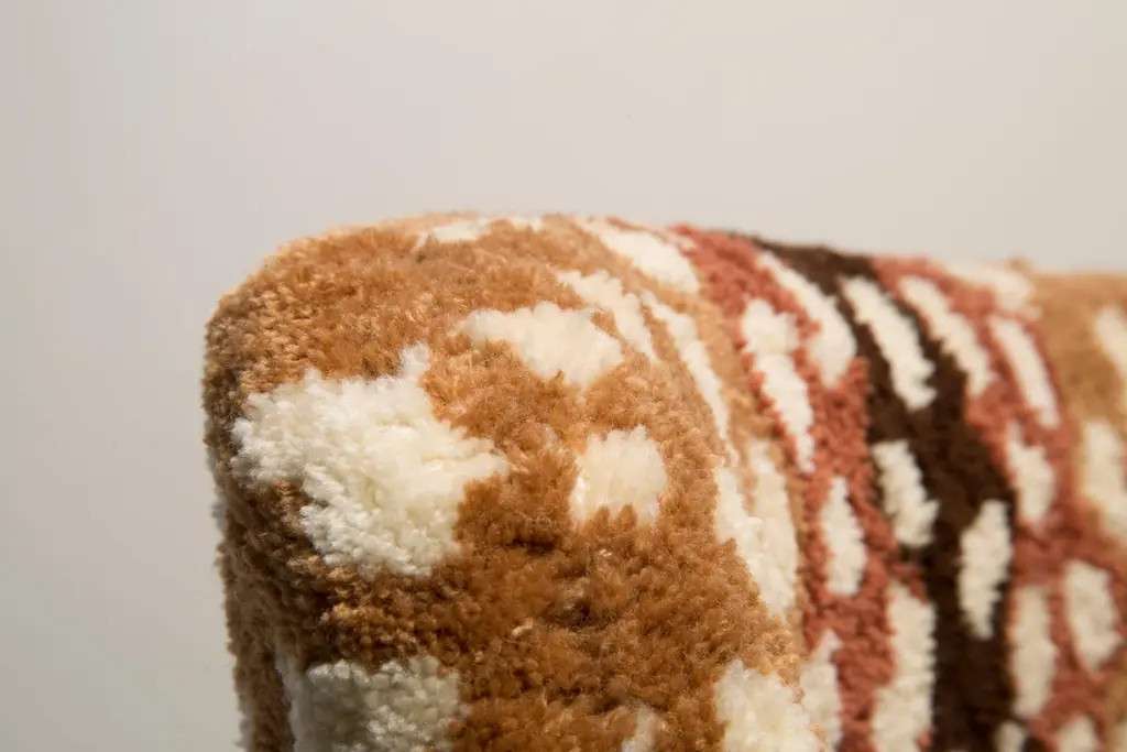 Beautiful chair type 1020 colloquially called "shell" produced by the Slupsk centre of furniture industry in the 1960s in Poland. About the fabric:Seat and back is hand tufting brown, white and camel wool. Absolutely hand made technic. Every chair is unique and can be a bit different. They are extremely comfortable. We can prepare this chair in another tufting colors. Waiting time is 3-4 weeks. Please ask for more information. The curves that agitate the ground and the color combinations pay homage to the more playful and hypnotic side of this majestic creature.Composition: 100% woolChairs are stable and very shapely.
