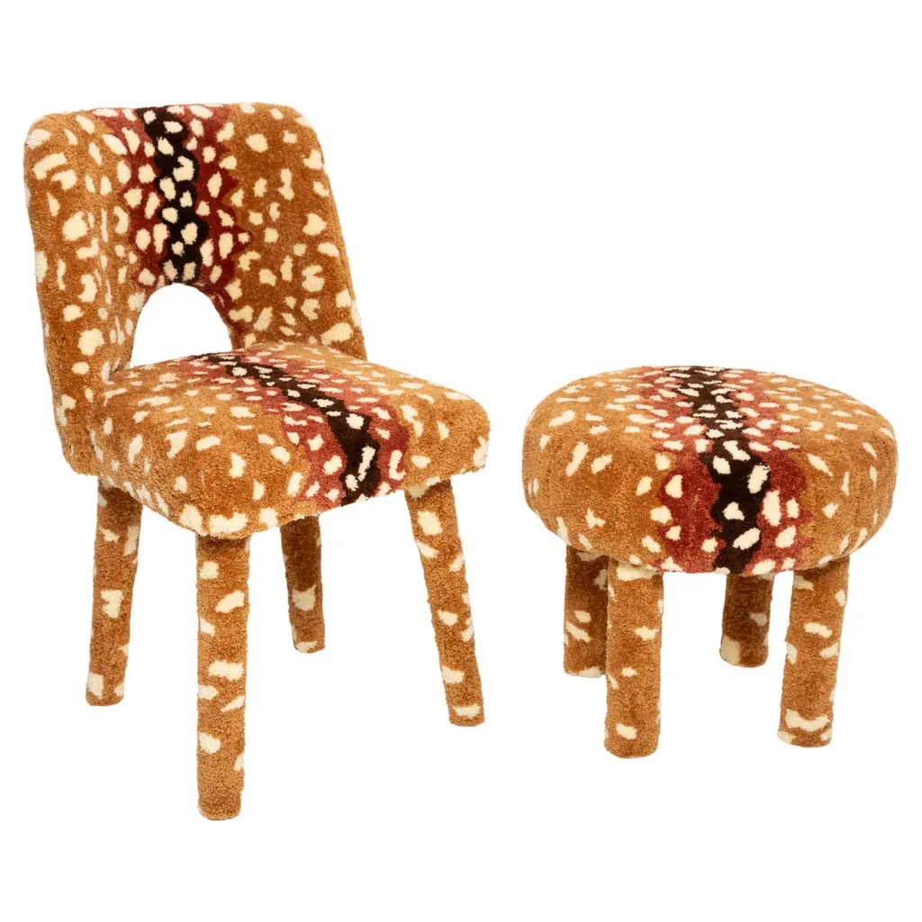 Mid Century Hand Tufting Roe Deer Bambi Wool Shell Chair, Europe, 1960s