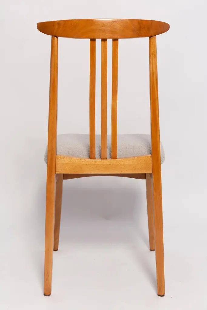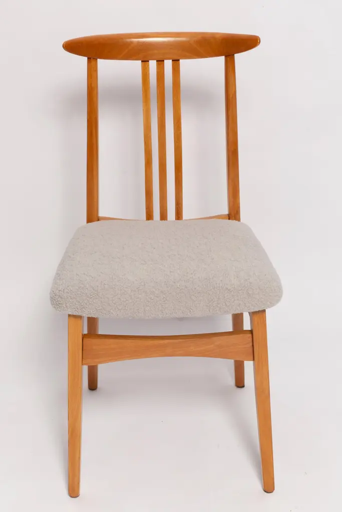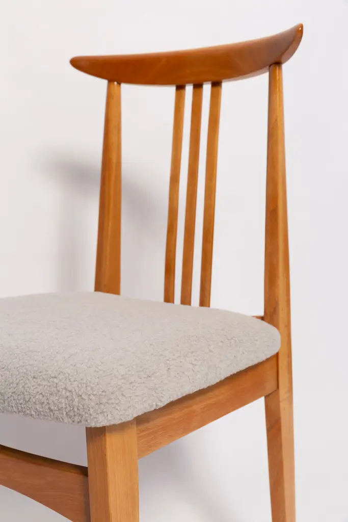 Mid-Century Linen Boucle Chair, Light Wood, By M. Zielinski, Europe, 1960s