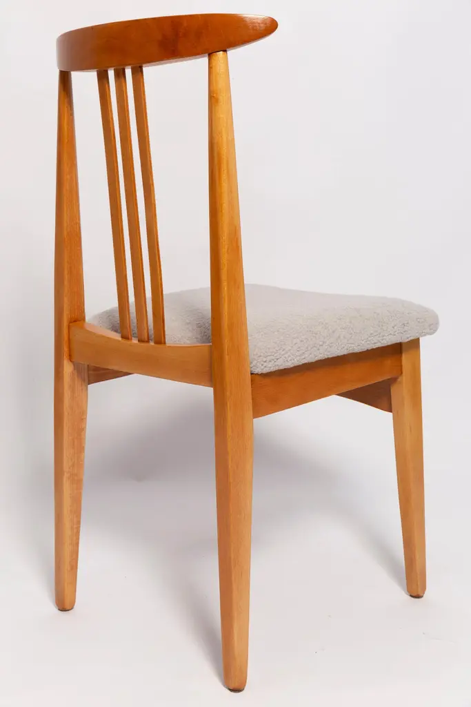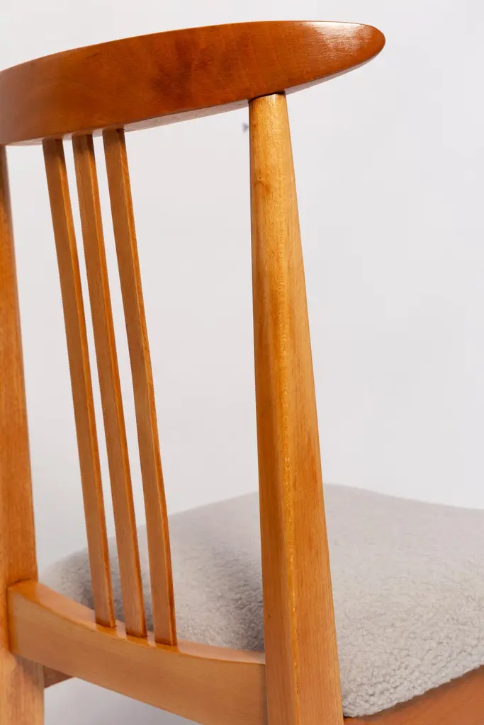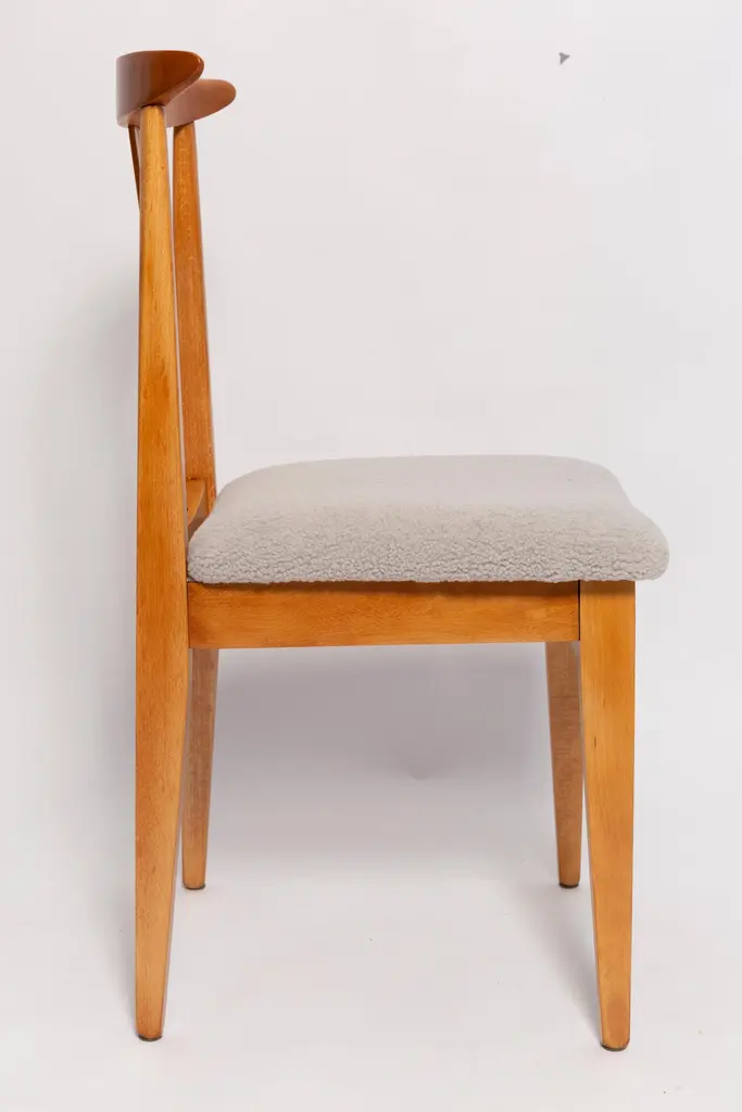 A beautiful beech chair designed by M. Zielinski, type 200 / 100B. Manufactured by the Opole Furniture Industry center at the end of the 1960s in Poland. The chair is after undergone a complete carpentry and upholstery renovation. Seats covered with high-quality italian light linen boucle fabric (color 08). Beech wood is after full refreshing, varnished in light brown warm color lacquer. This model of chair have very nice and organic shape. They have amazing form. Even in small size the Zielinski's chair is very comfortable. We highly recommend them to every type of interior. ecommend them to every type of interior. We can prepare also bigger sets in every color of wood and boucle. Please have a look on the last picture. Waiting time up to 3 weeks. Cheap delivery guaranteed.
